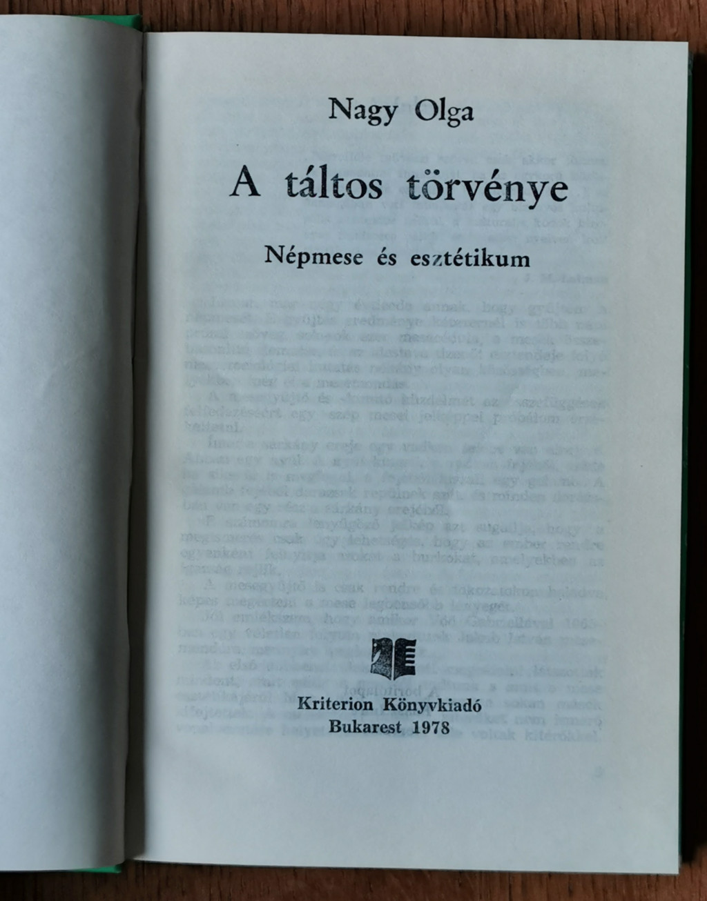 Nagy Olga: A táltos törvénye (népmese és esztétikum)