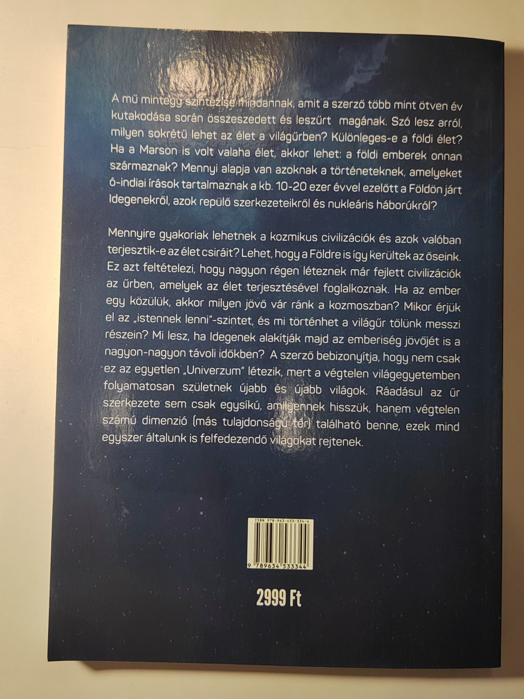 Mennyire gyakoriak lehetnek a kozmikus civilizációk és azok valóban terjesztik-e az élet csiráit? Lehet, hogy a Földre is így kerültek az őseink. Ez azt feltételezi, hogy nagyon régen léteznek már fejlett civilizációk az űrben, amelyek az élet terjesztésével foglalkoznak. Ha az ember egy közülük, akkor milyen jövő vár ránk a kozmoszban? Mikor érjük el az „istennek lenni”-szintet, és mi történhet a világűr tőlünk messzi részein? Mi lesz, ha Idegenek alakítják majd az emberiség jövőjét is a nagyon-nagyon távoli időkben? A szerző bebizonyítja, hogy nem csak ez az egyetlen „Univerzum” létezik, mert a végtelen világegyetemben folyamatosan születnek újabb és újabb világok. Ráadásul az űr szerkezete sem csak egysíkú, amilyennek hisszük, hanem végtelen számú dimenzió (más tulajdonságú tér) található benne, ezek mind egyszer általunk is felfedezendő világokat rejtenek.