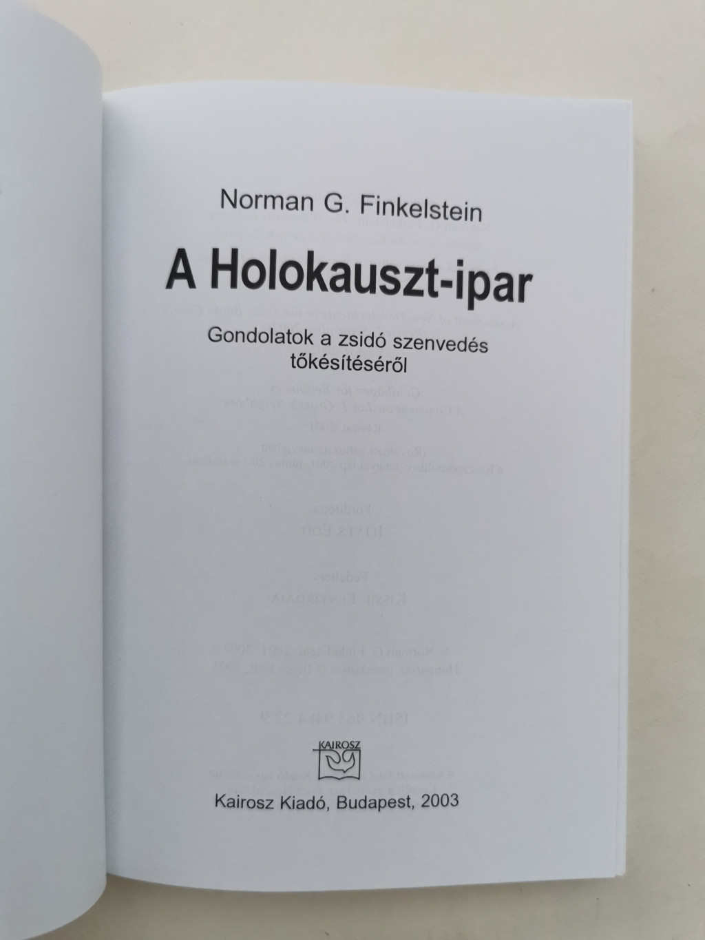 Norman G. Finkelstein: A Holokauszt-ipar - Gondolatok a zsidó szenvedés tőkésítéséről