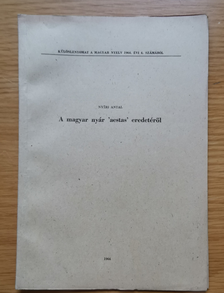 Nyíri Antal: A magyar nyár 'aestas' eredetéről (Dedikált!)