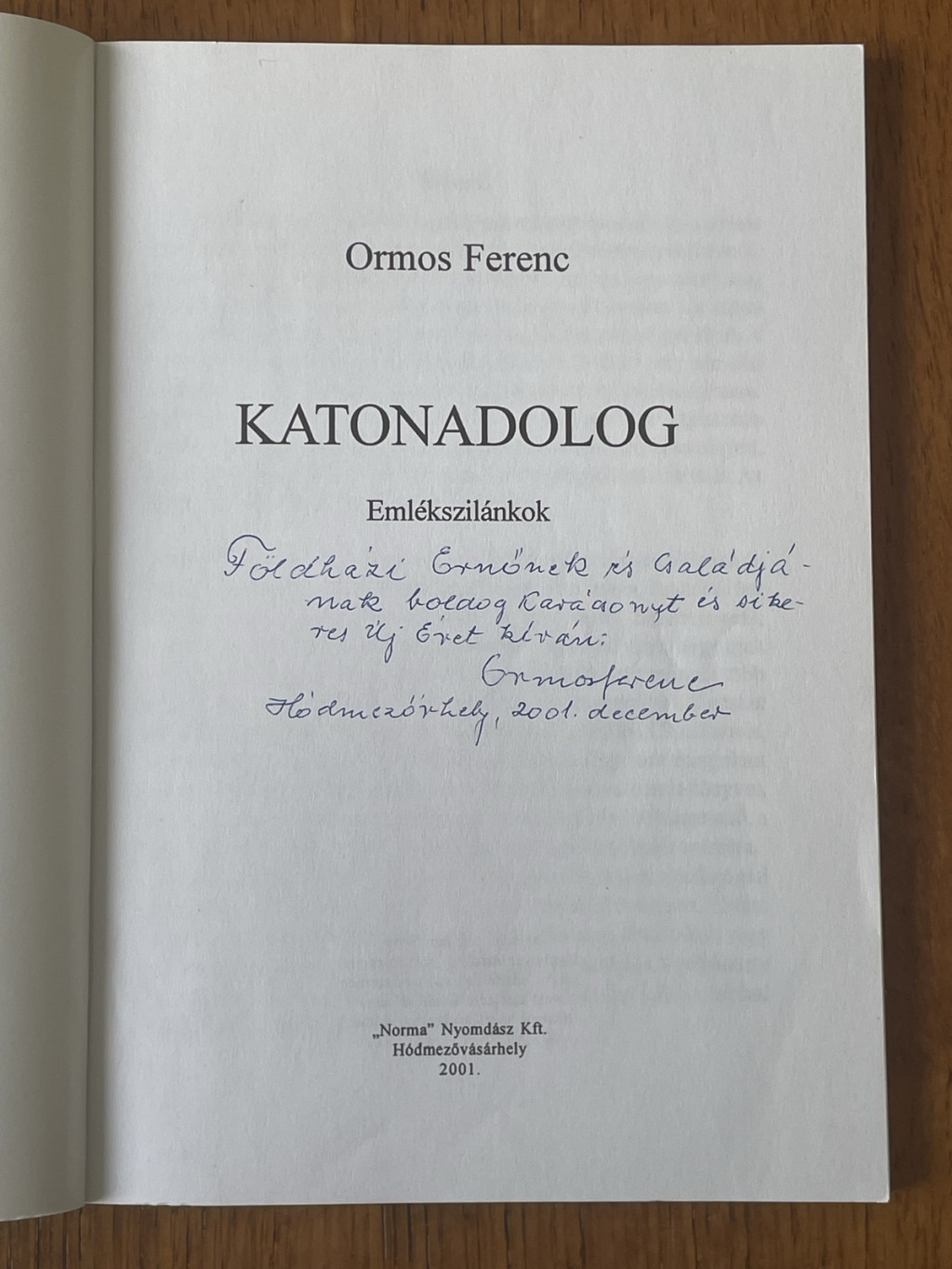 Ormos Ferenc: Katonadolog (Dedikált)