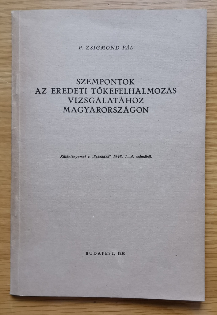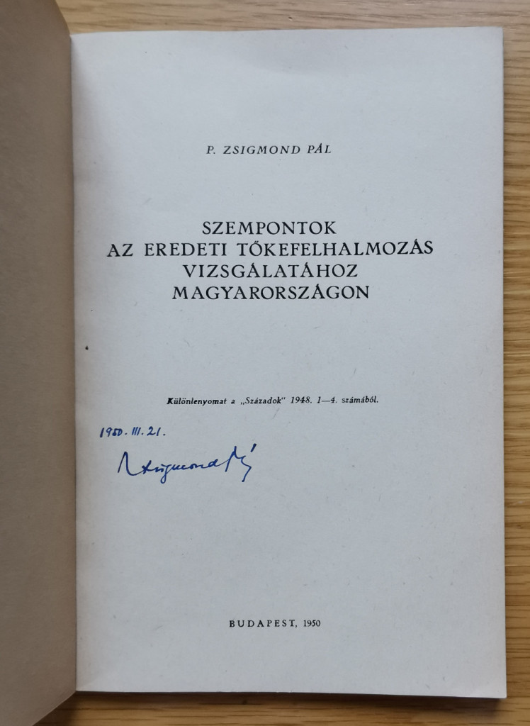P[ach] Zsigmond Pál: Szempontok az eredeti tőkefelhalmozás vizsgálatához Magyarországon (Dedikált!)