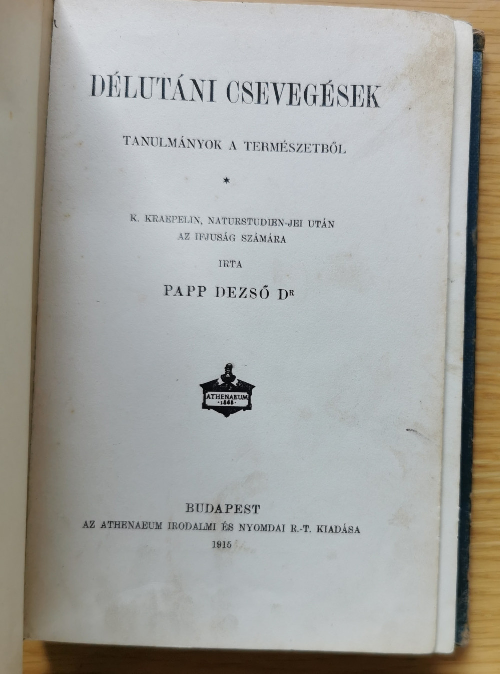 Papp Dezső, Dr.: Délutáni csevegések. Tanulmányok a természetből