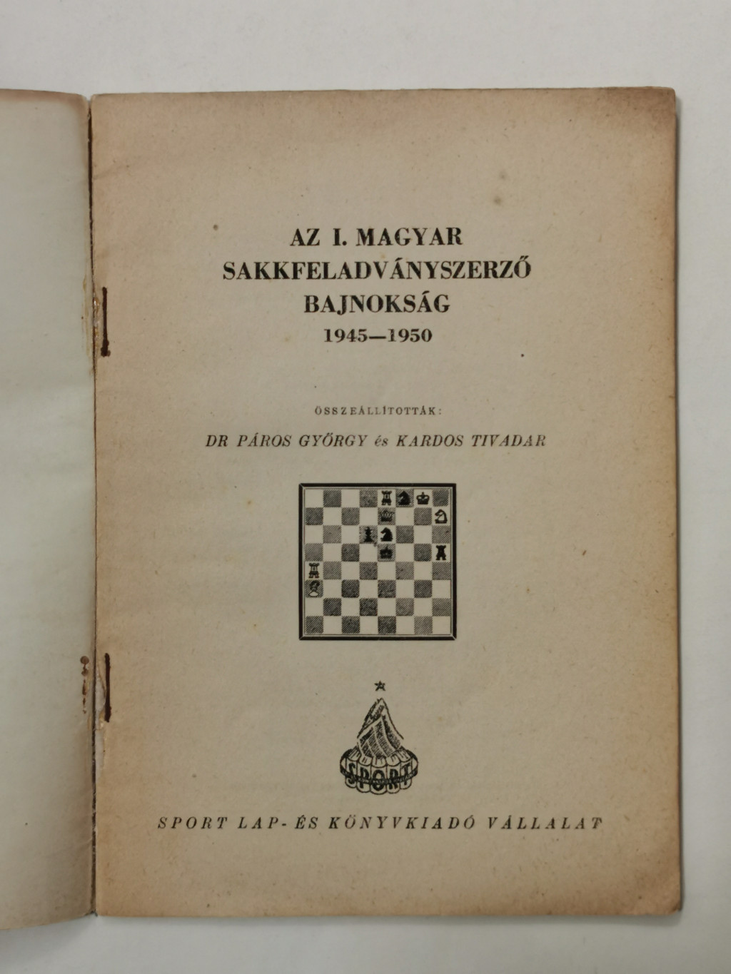 Páros György, Dr. - Kardos Tivadar (szerk.): Az I. magyar sakkfeladványszerző bajnokság 1945-1950