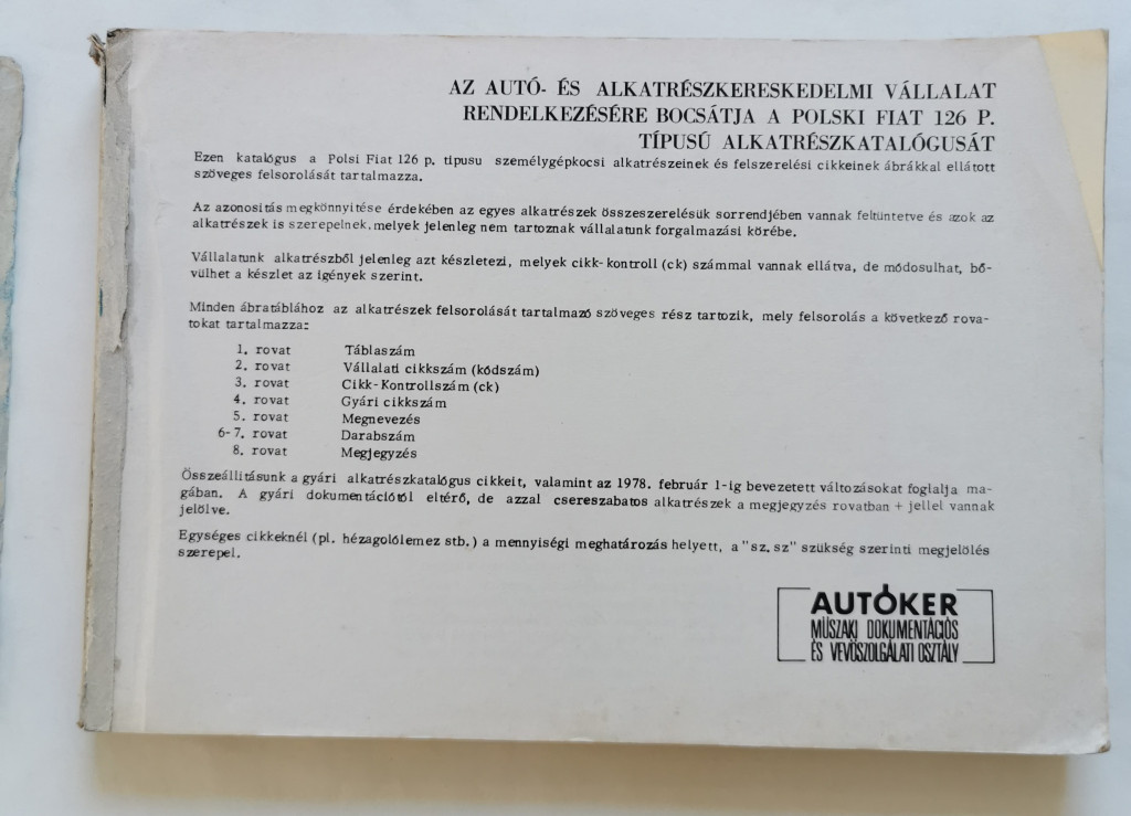 Polski Fiat 126p személygépkocsi alkatrészkatalógusa