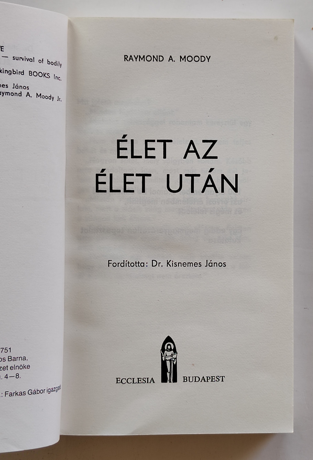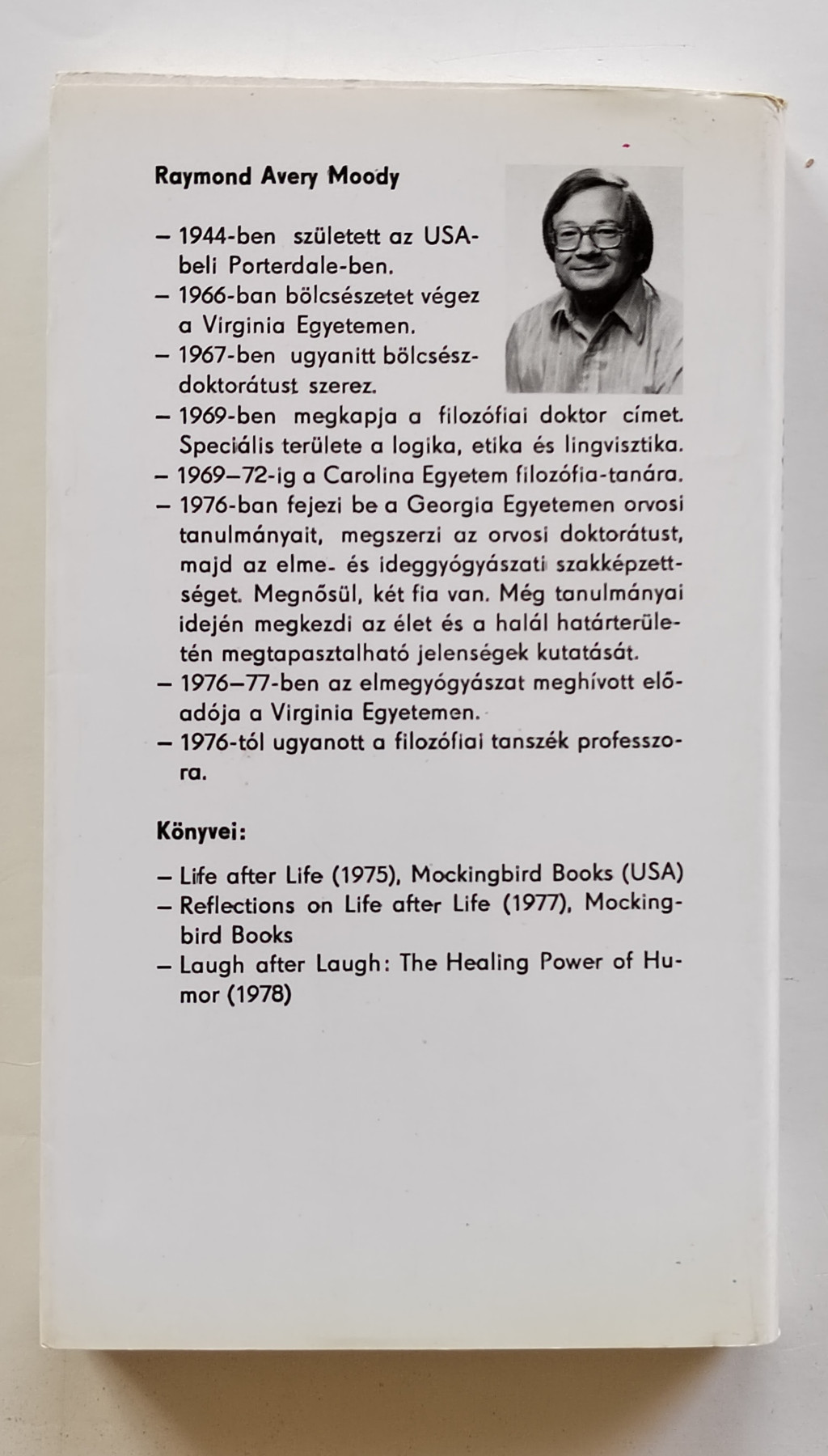 A jelen kötetbe foglalt két könyv szerzője, Raymond A. Moody – a filozófia és az orvostudomány doktora – 150 olyan személynek a klinikai halál alatti élményei és tapasztalatai alapján írta meg „Élet az élet után” c. könyvét, akiket aztán sikerült újraéleszteni. A könyv körül kialakult vitára újabb könyvvel reagált, melyben további kutatásai eredményeit is ismerette.