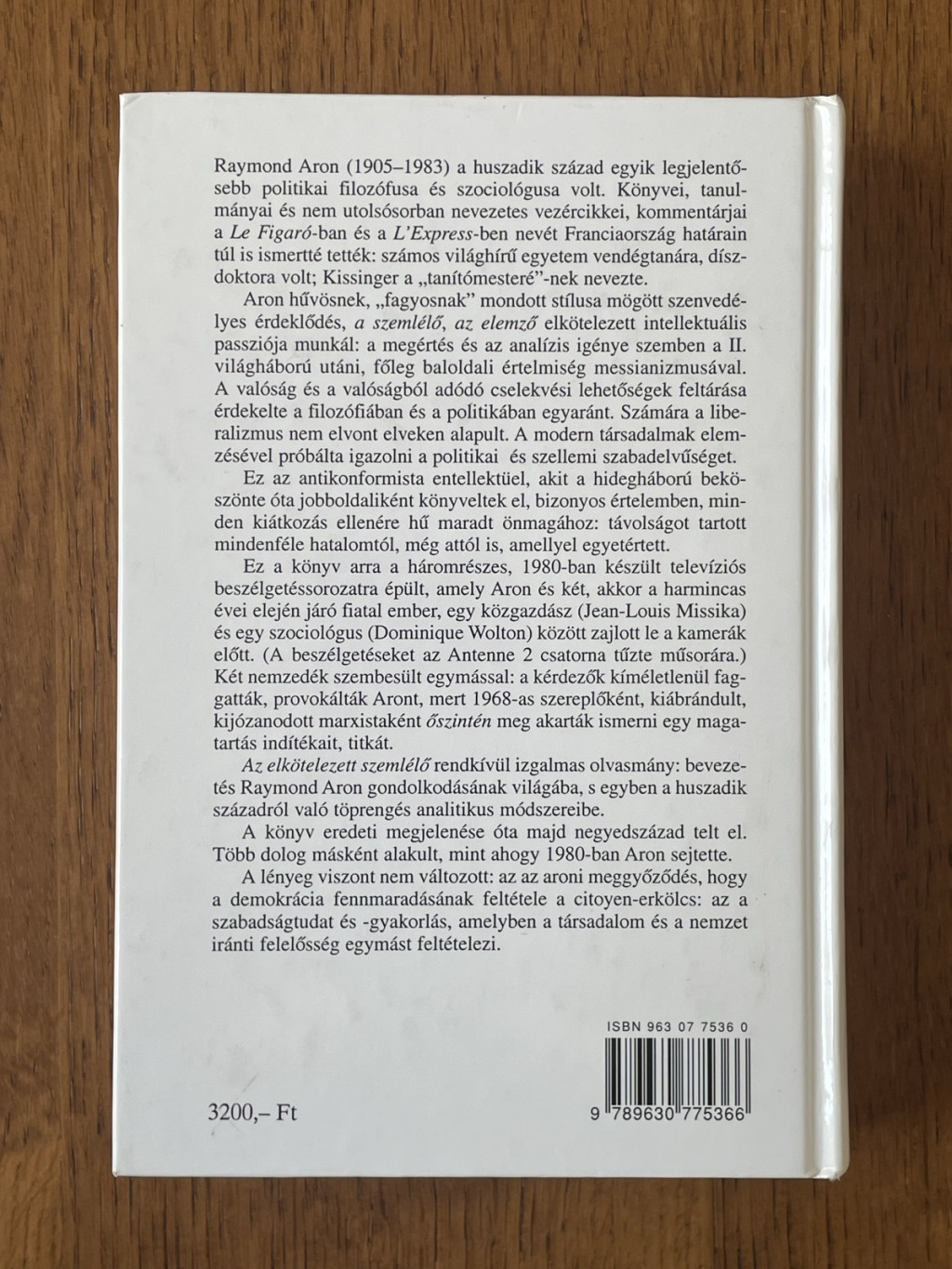 Raymond Aron (1905-1983) a huszadik század egyik legjelentősebb politikai filozófusa és szociológusa volt. Könyvei, tanulmányai és nem utolsósorban nevezetes vezércikkei, kommentárjai a Le Figaró-ban és a L'Express-ben nevét Franciaország határain túl is ismertté tették: számos világhírű egyetem vendégtanára, díszdoktora volt; Kissinger a „tanítómesteré”-nek nevezte.