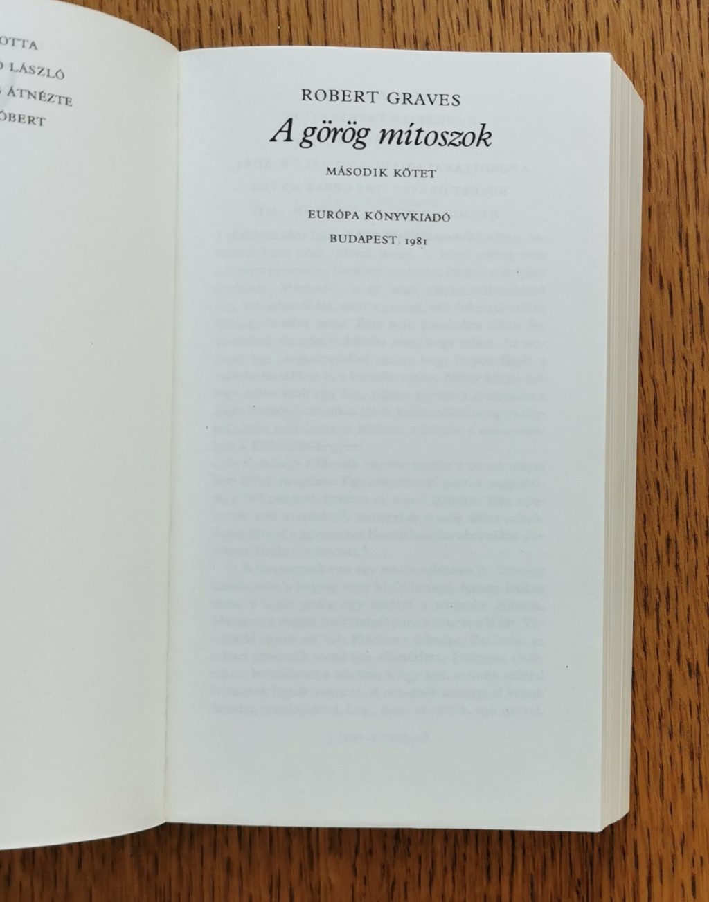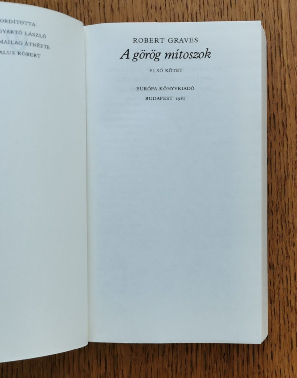 Robert Graves; a kitűnő angol költő és népszerű regényíró több évtizedes kutatómunkájának összefoglalása ez a kétkötetes mű. Az olvasó megtalálja benne az összes görög mítoszokat - a teremtésmítoszokat, az Olümposz sokszor nagyon is emberi isteneinek és istennőinek születését és viselt dolgait, a nagy hősök, Thészeusz, Héraklész csodás kalandjait, Oidipúsz szomorú sorsát, Oresztész bosszúját, az aranygyapjú történetét, a trójai háborút, a csavaros eszű Odüsszeusz bolyongását -, világos, élvezetes modern prózába öntve.