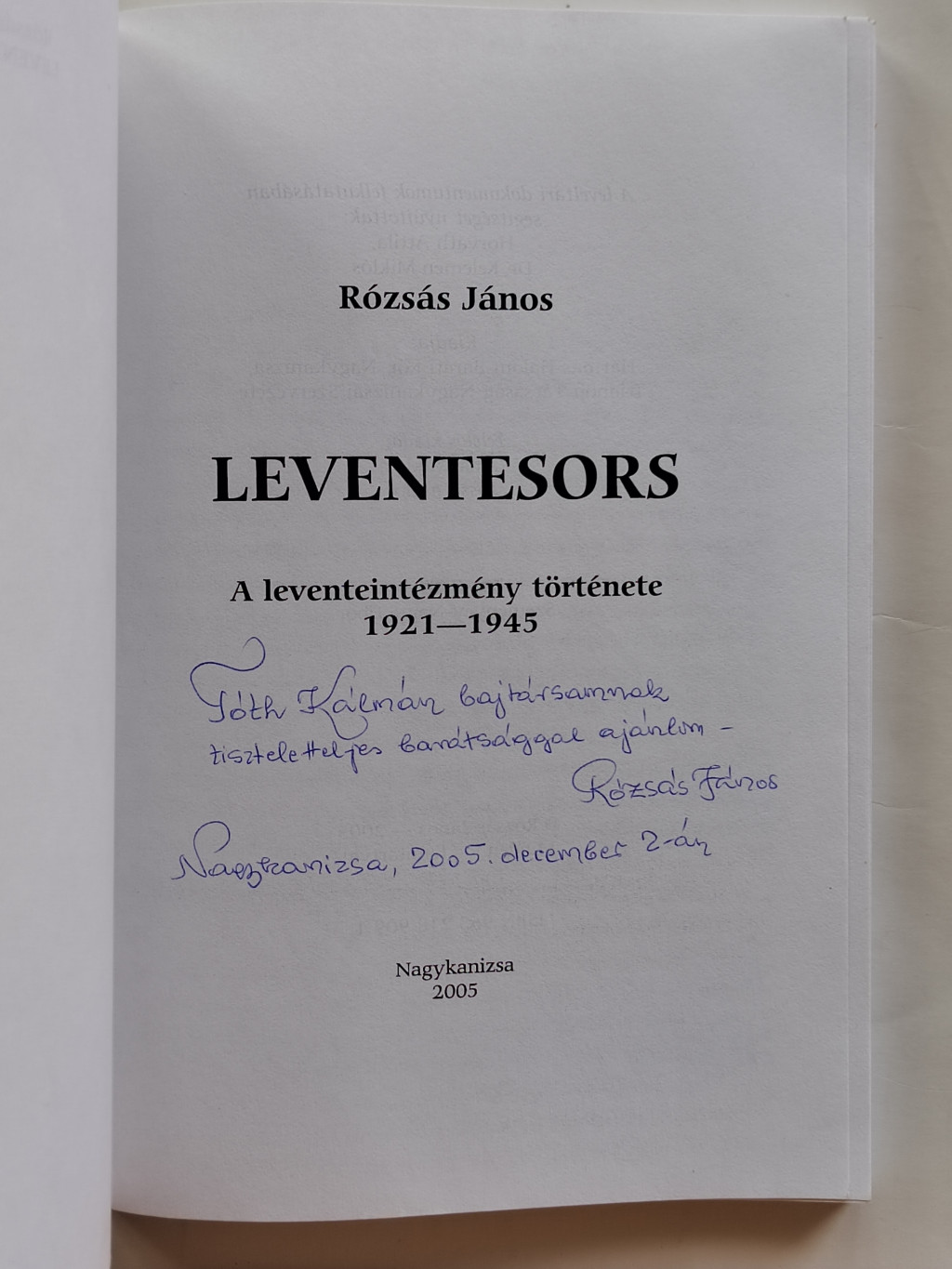 Rózsás János: Leventesors (Dedikált)