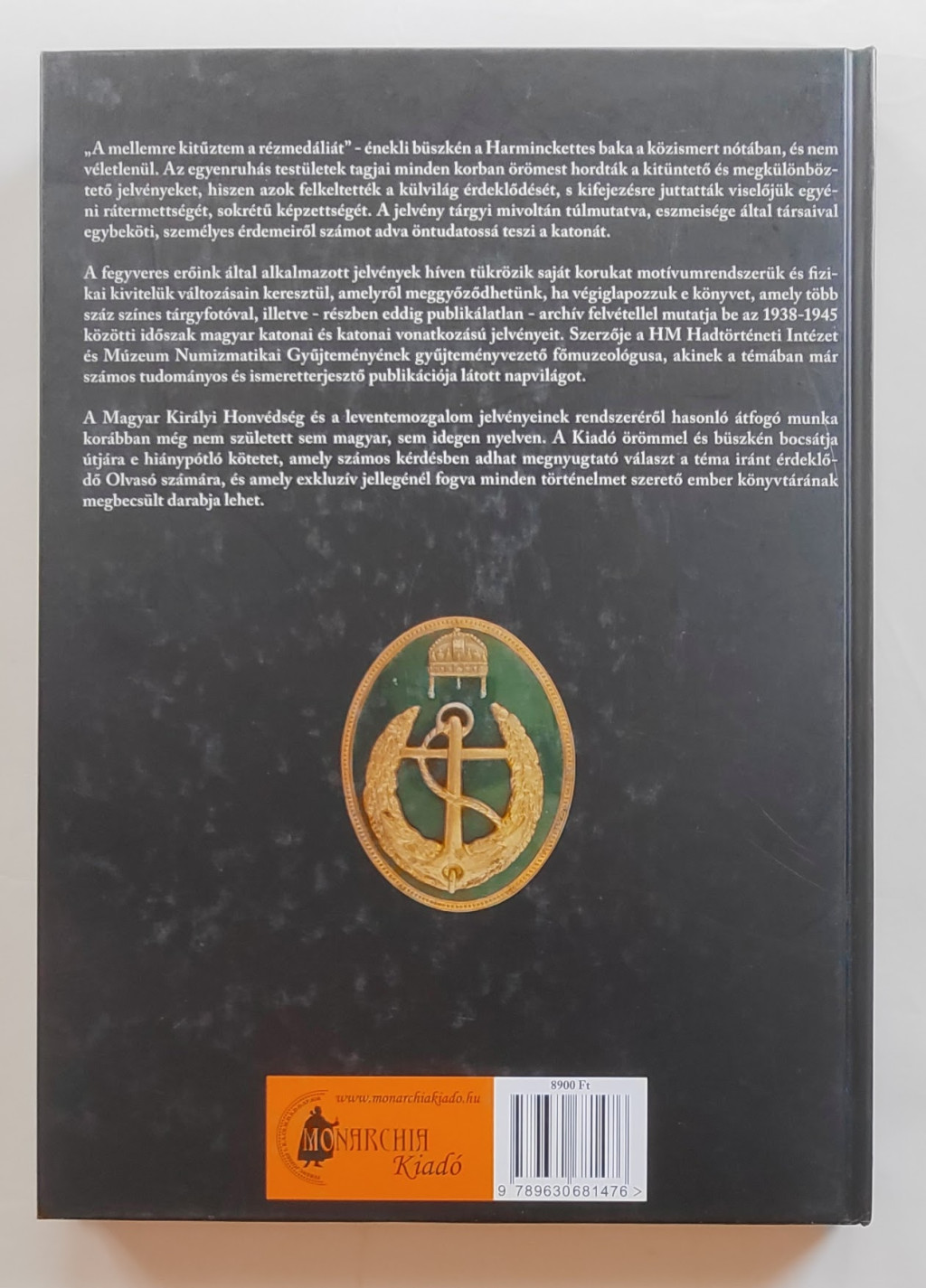 A Magyar Királyi Honvédség és a leventemozgalom jelvényeinek rendszeréről hasonló átfogó munka korábban még nem született sem magyar, sem idegen nyelven. A Kiadó örömmel és büszkén bocsátja útjára e hiánypótló kötetet, amely számos kérdésben adhat megnyugtató választ a téma iránt érdeklődő Olvasó számára, és amely exkluzív jellegénél fogva minden történelmet szerető ember könyvtárának megbecsült darabja lehet.