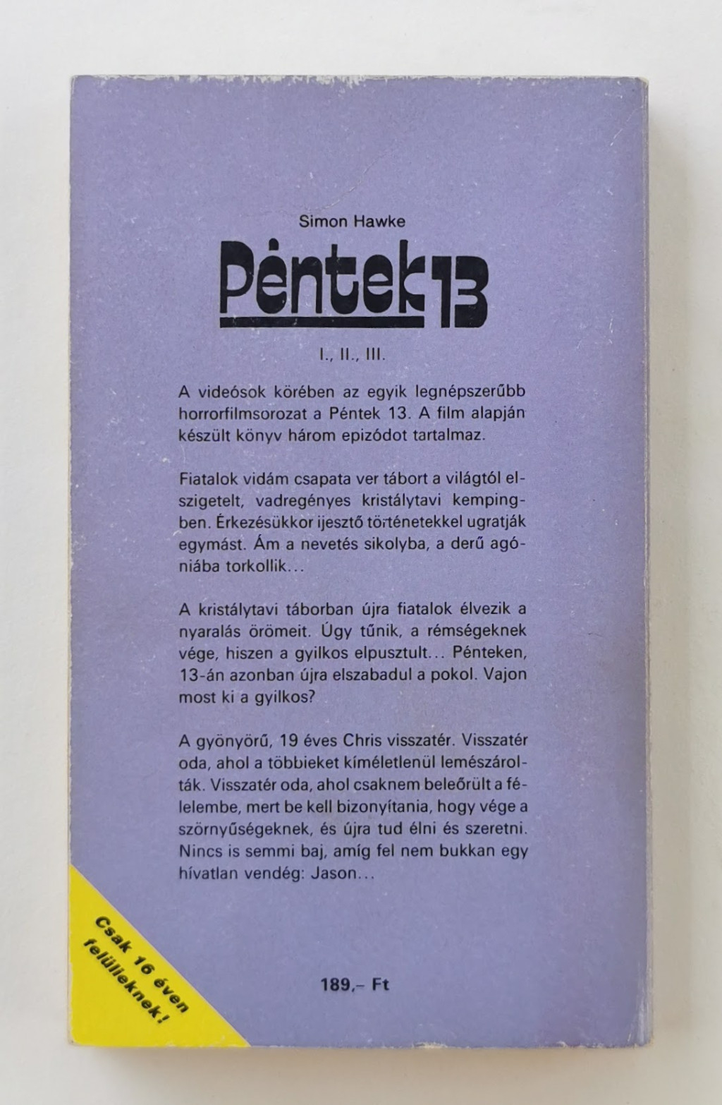 A videósok körében az egyik legnépszerűbb horrorfilmsorozat a Péntek 13. A film alapján készült könyv három epizódot tartalmaz.