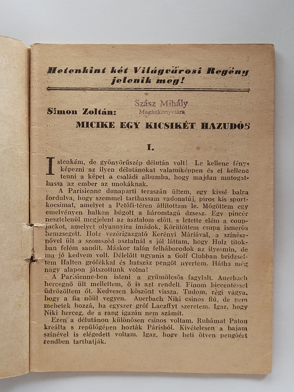 Simon Zoltán: Micike egy kicsikét hazudós (Világvárosi regények 871.)