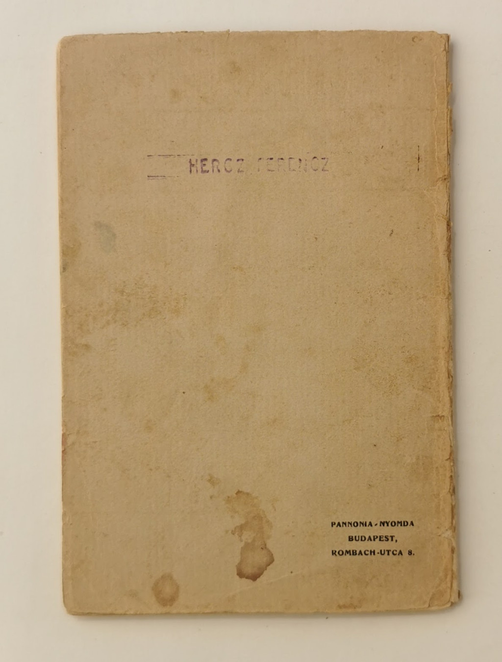 A borító fedő- és hátlapján, valamint a címlapon tulajdonosi névbélyegző. A borító verzóján ceruzás számoszlopok. Fűzve, kiadói, illusztrált, gerincén szépen javított papírborítóban. Jó állapotú példány. Ritka!