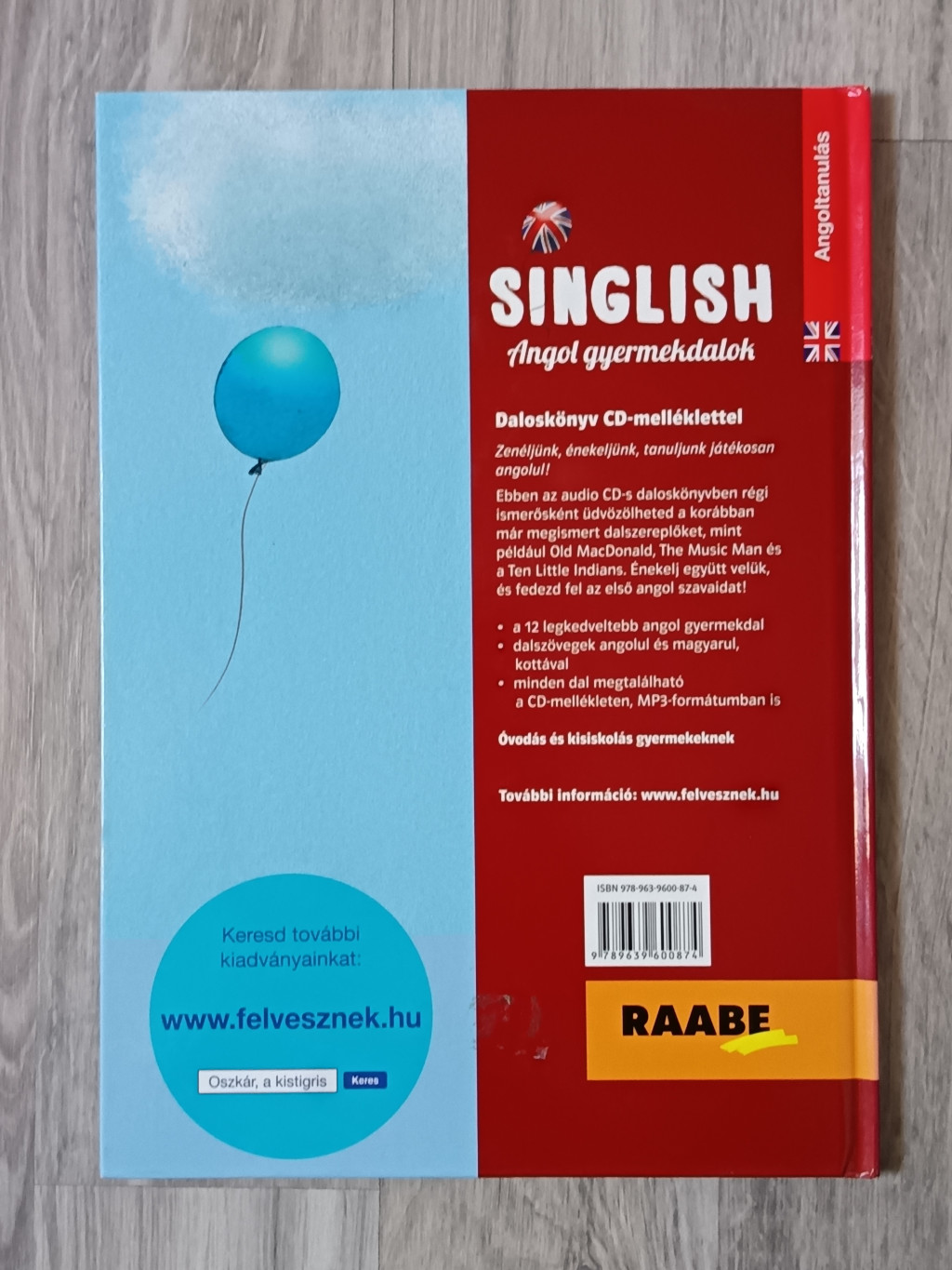 Ebben az audio CD-s daloskönyvben régi ismerősként üdvözölheted a korábban már megismert dalszereplőket, mint például Old MacDonald, The Music Man és a Ten Little Indians. Énekelj együtt velük, és fedezd fel az első angol szavaidat!