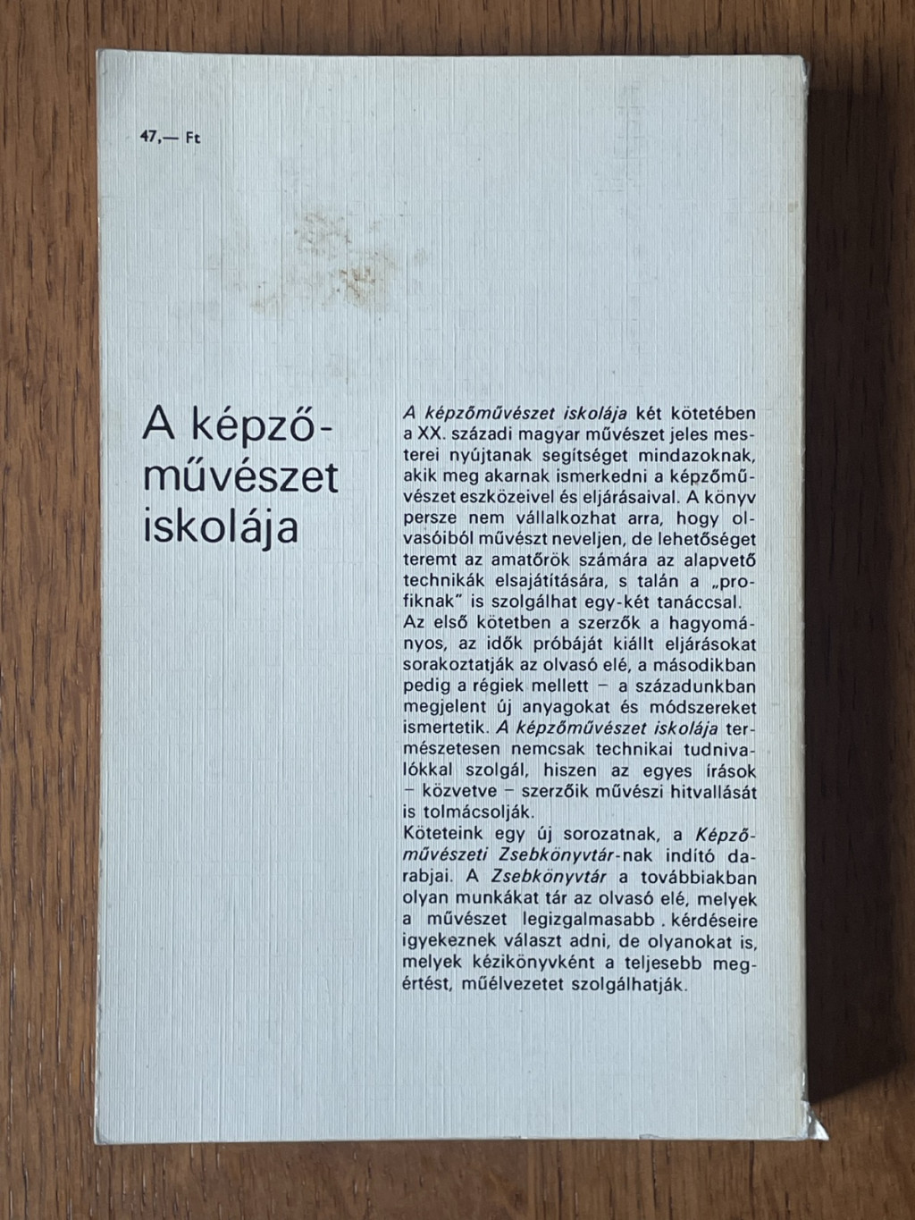 A képzőművészet iskolája két kötetében a XX. századi magyar művészet jeles mesterei nyújtanak segítséget mindazoknak, akik meg akarnak ismerkedni a képzőművészet eszközeivel és eljárásaival. A könyv persze nem vállalkozhat arra, hogy olvasóiból művészt neveljen, de lehetőséget teremt az amatőrök számára az alapvető technikák elsajátítására, s talán a „profiknak” is szolgálhat egy-két tanáccsal.