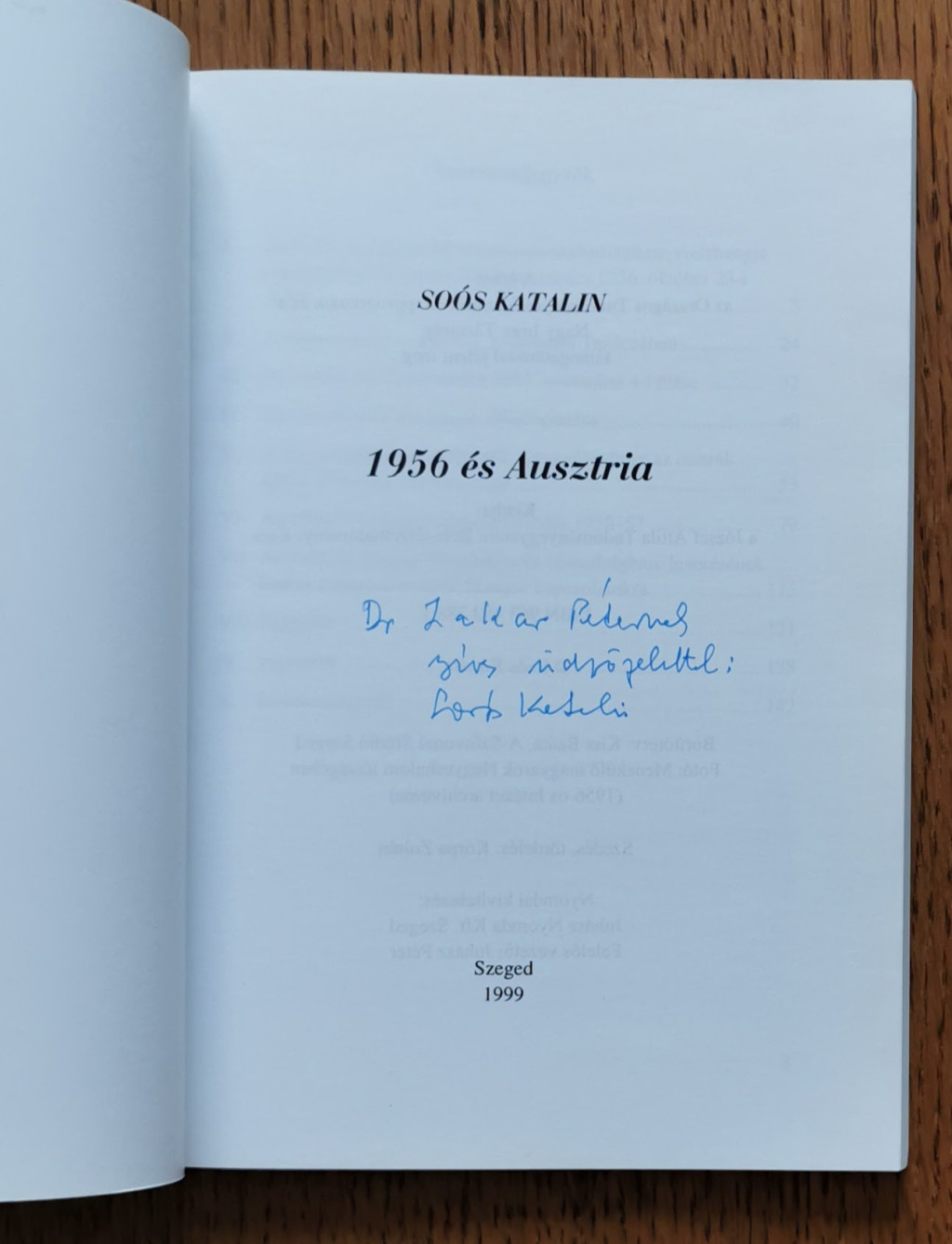 Soós Katalin: 1956 és Ausztria (dedikált)