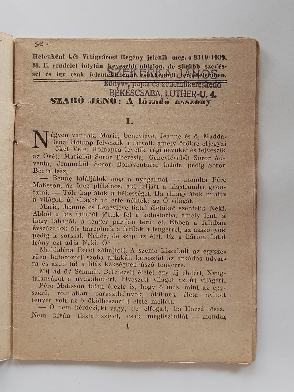 Szabó Jenő: A lázadó asszony (Világvárosi regények 728.)