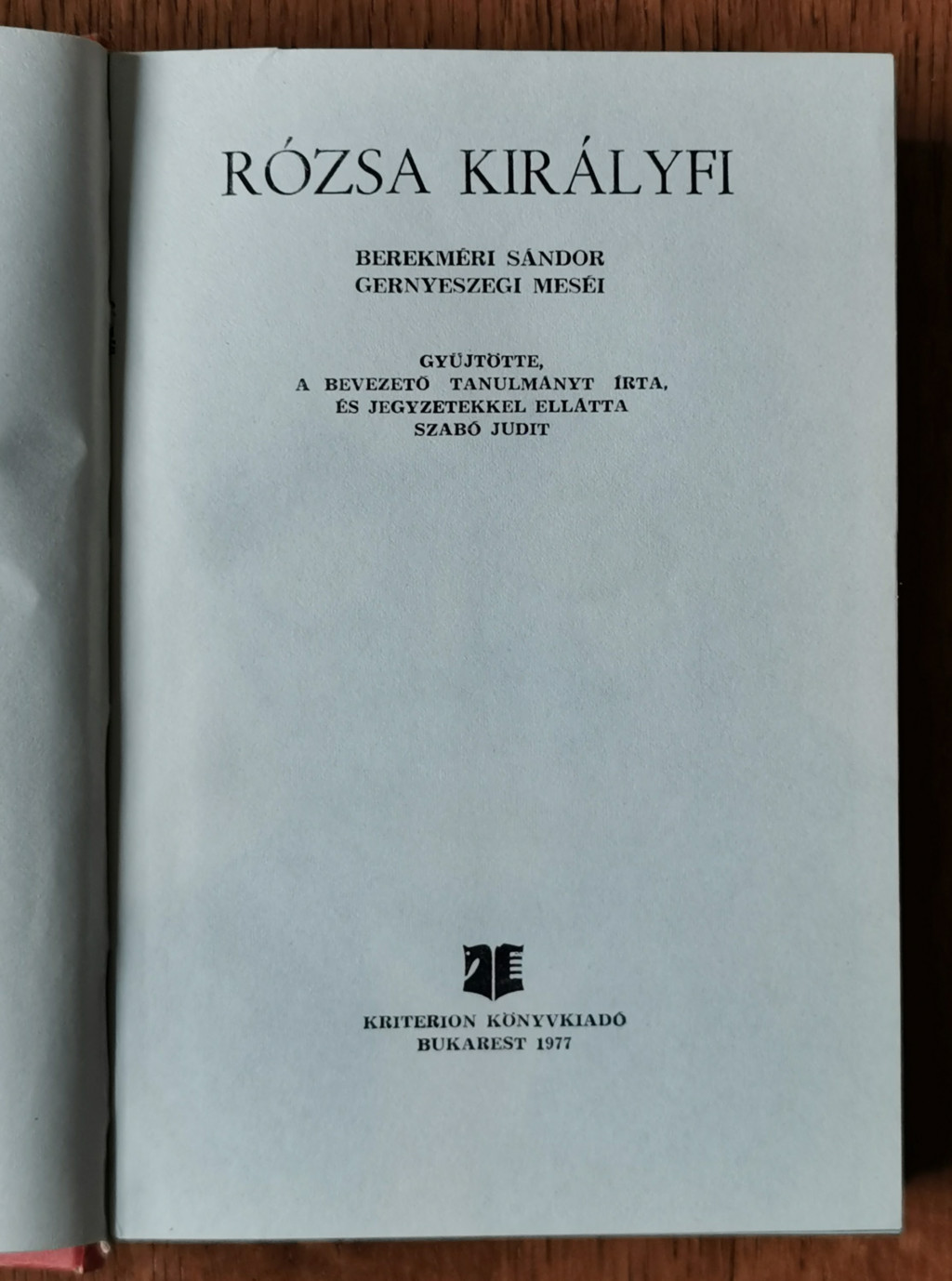 Szabó Judit (szerk.): Rózsa királyfi (Berekméri Sándor gernyeszegi meséi)