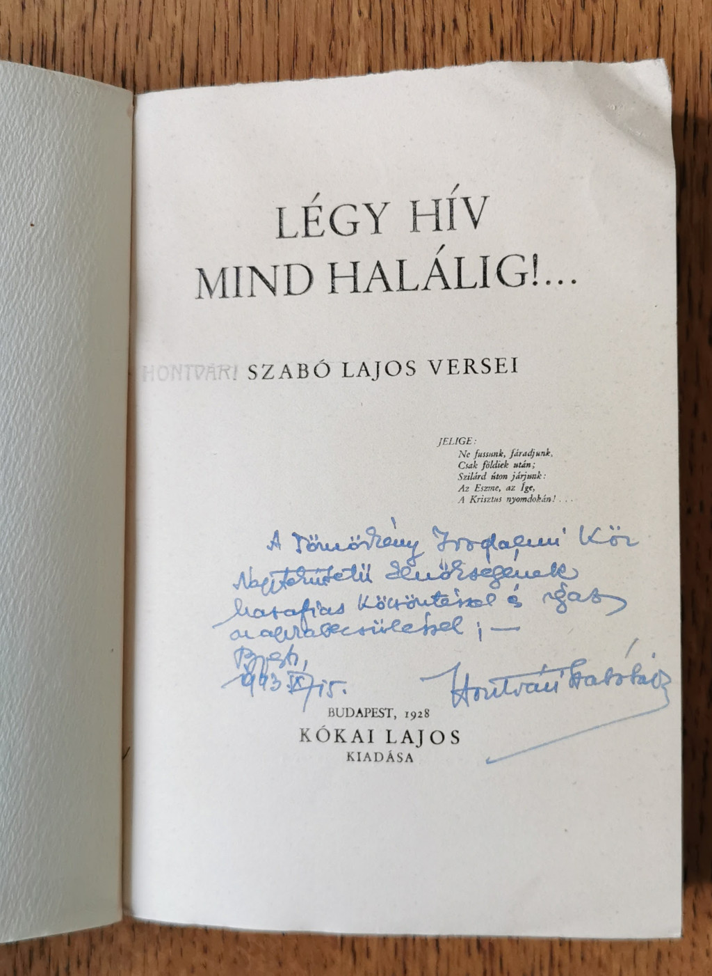 Hontvári Szabó Lajos: Légy hív mind halálig! (Dedikált)