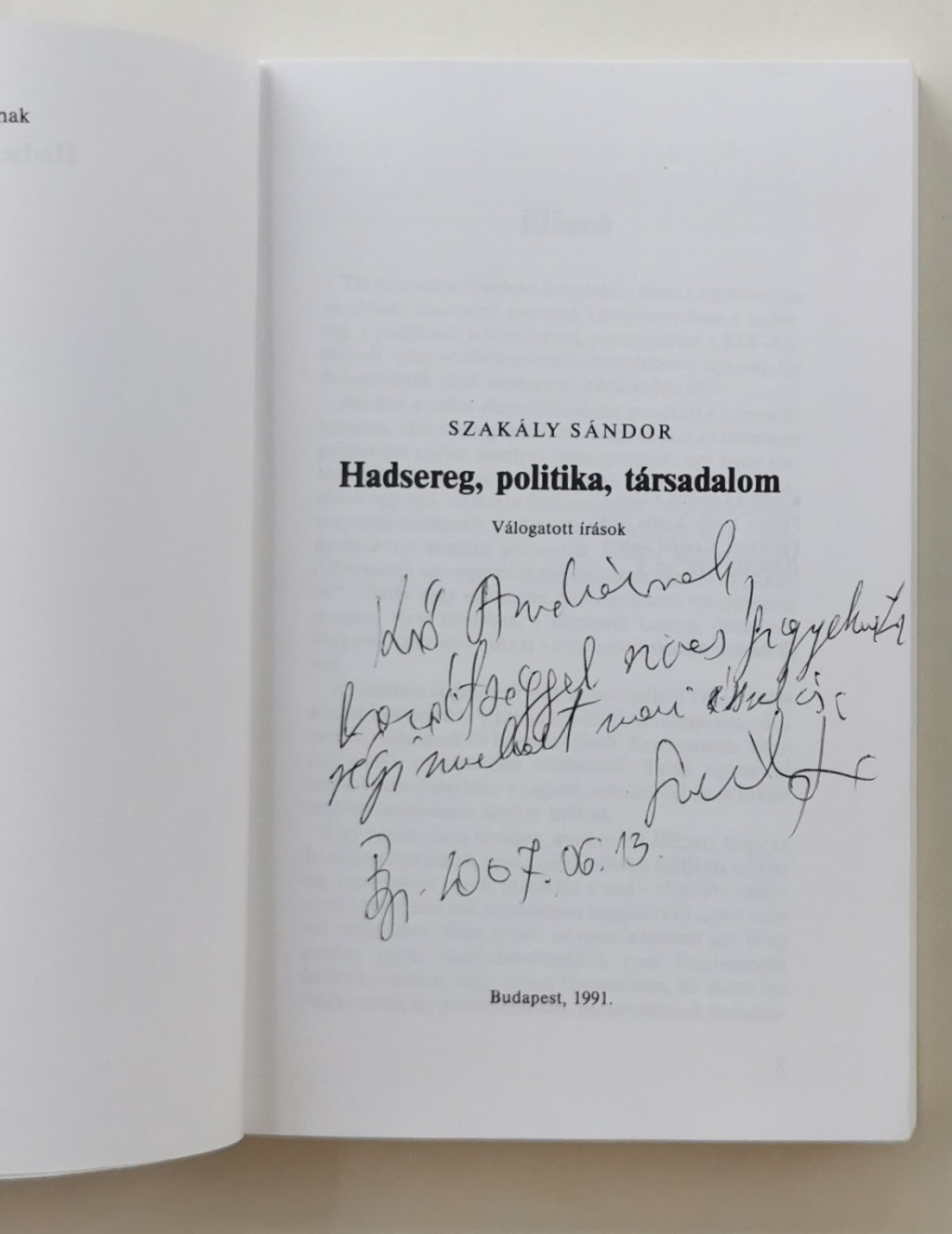 Szakály Sándor: Hadsereg, politika, társadalom (Dedikált!)