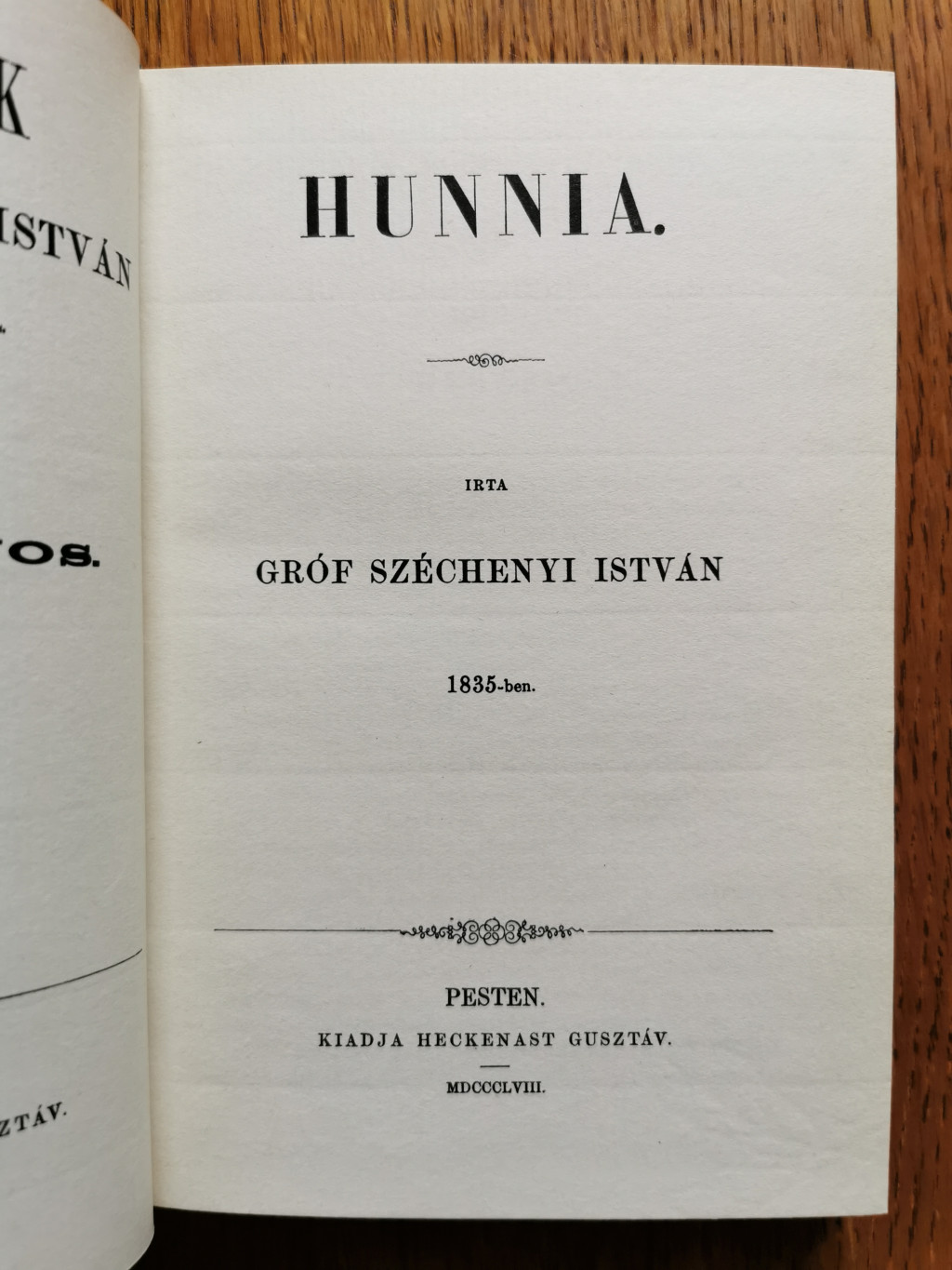 Reprint kiadás. Mint midőn a család köréből váratlanul elköltöző drága rokon; tán atya szekrényében a bus hátrahagyottak iratokra akadnak, hol feljegyezve van sok üdvös gondolat és óhajtás, mit a kedves távozó élő szóval többé el nem mondhatott; s mint egy nemes indulatu, s boldogitni törekvő végrendelet, melyet a hálás utódok véletlenül felfedeznek; - oly édes megrendülést okozhatott minden kegyeletes hazafiui kebelben a hir, hogy a magyar nemzet egyik legnagyobb jóltevőjének, felejthetetlen Széchenyinknek, irói tevékenysége korából nevezetes csomó kiadatlan kézirata maradt fenn, mely számtalan legkülönfélébb feliratokkal ellátott jegyzetet, eszmetöredéket, munkatervezetet s nagybecsü anyag-gyüjteményt foglal magában, mik között a "Hunnia" és "Budapesti por és sár" czimü dolgozat is találtatott.