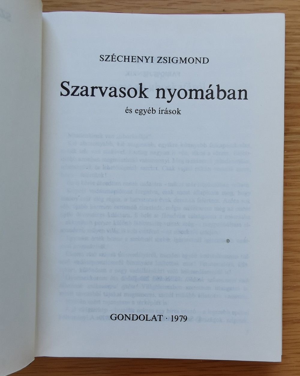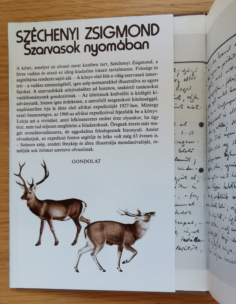A kötet, amelyei az olvasó most kezében tart, Széchenyi Zsigmond, a híres vadász és utazó ez ideig kiadatlan írásait tartalmazza. Felesége és segítőtársa rendezte sajtó alá. - A könyv első fele a világ szarvasait ismerteti a vadasz szemszögéből, igen szép metszetekkel illusztrálva az egyes fajokat. A szarvasbikák selejtezéséhez ad hasznos, szakértő tanácsokat vadállományunk gondozóinak. - Az útleírások kedvelőit is kielégíti kiadványunk, hiszen igen érdekesen, a szerzőtől megszokott hitelességgel, naplós/crüon írja le élete első afrikai expedícióját 1927-ben. Mintegy ezzel összecsengve, az 1960-as afrikai expedícióval