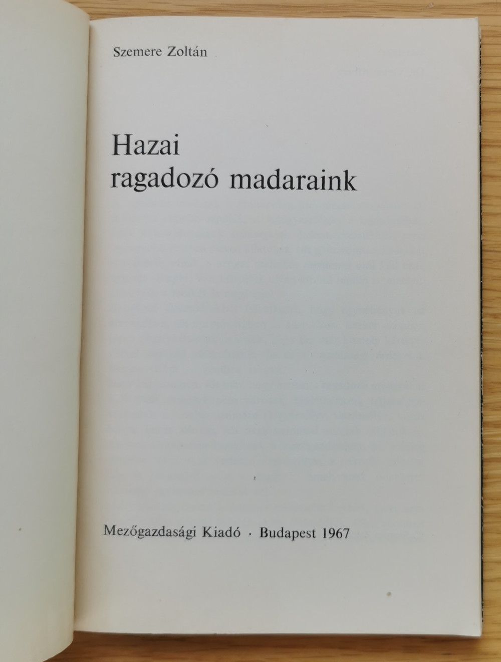 Szemere Zoltán:  Hazai ragadozó madaraink