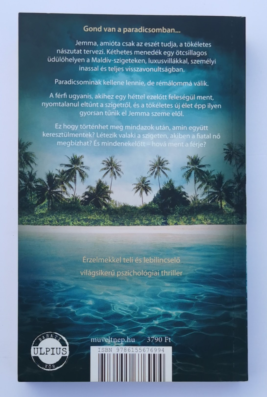 Jemma, amióta csak az eszét tudja, a tökéletes nászutat tervezi. Kéthetes menedék egy ötcsillagos üdülőhelyen a Maldív-szigeteken, luxus villákkal, személyi inassal és teljes visszavonultságban. Paradicsominak kellene lennie, de rémálommá válik. A férfi ugyanis, akihez egy héttel ezelőtt feleségül ment, nyomtalanul eltűnt a szigetről, és a tökéletes új élet épp ilyen gyorsan tűnik el Jemma szeme elől.