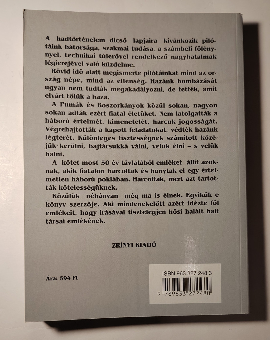 A kötet most 50 év távlatából emléket állít azoknak, akik fiatalon harcoltak és hunytak el egy értelmetlen háború poklában. Harcoltak, mert azt tartották kötelességüknek.