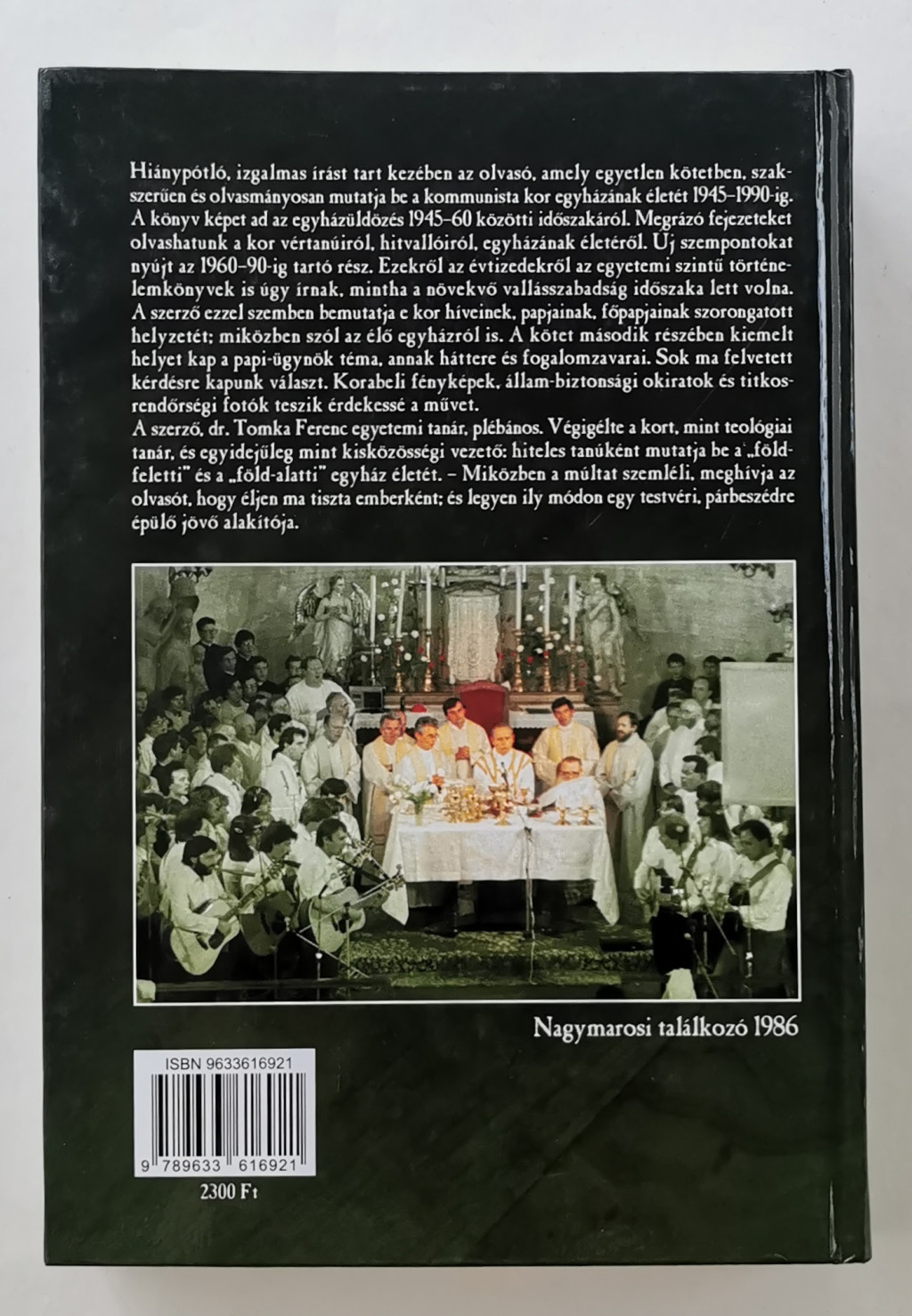 A szerző, dr. Tomka Ferenc egyetemi tanár, plébános. Végigélte a kort mint teológiai tanár, és egyidejűleg mint kisközösségi vezető: hiteles tanúként mutatja be a „földfeletti” és a „föld-alatti” egyház életét. Miközben a múltat szemléli, meghívja az Olvasót, hogy éljen ma tiszta emberként; és legyen ily módon egy testvéri, párbeszédre épülő jövő alakítója.