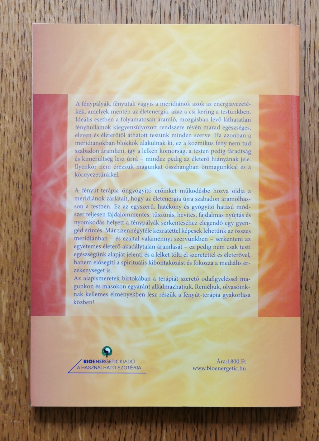 A fénypályák; fényutak vagyis a meridiánok azok az energiavezetékek, amelyek mentén az életenergia, azaz a csi kering a testünkben. Ideális esetben a folyamatosan áramló, mozgásban lévő láthatatlan fényhullámok kiegyensúlyozott rendszere révén marad egészséges, eleven és életerőtől áthatott testünk minden szerve. Ha azonban a meridiánokban blokkok alakulnak ki, ez a kozmikus fény nem tud szabadon áramlani, így a lelken komorság, a testen pedig fáradtság és kimerültség lesz úrrá - mindez pedig az életerő hiányának jele. Ilyenkor nem érezzük magunkat összhangban önmagunkkal és a környezetünkkel. A fényút-terápia öngyógyító erőinket működésbe hozva oldja a meridiánok zárlatait, hogy az életenergia újra szabadon áramolhasson a testben. Ez az egyszerű, hatékony és gyógyító hatású módszer teljesen fájdalommentes: tűszúrás, hevítés, fájdalmas nyújtás és nyomkodás helyett a fénypályák serkentéséhez elegendő egy gyengéd érintés. Már tizennégyféle kézrátéttel képesek lehetünk az összes meridiánban - és ezáltal valamennyi szervünkben - serkenteni az egyetemes életerő akadálytalan áramlását - ez pedig nem csak testi egészségünk alapját jelenti és a lelket tölti el szeretettel és életerővel, hanem elősegíti a spirituális kibontakozást és fokozza a mediális érzékenységet is. Az alapismeretek birtokában a terápiát szerető odafigyeléssel magunkon és másokon egyaránt alkalmazhatjuk. Reméljük, olvasóinknak kellemes élményekben lesz részük a fényút-terápia gyakorlása közben!