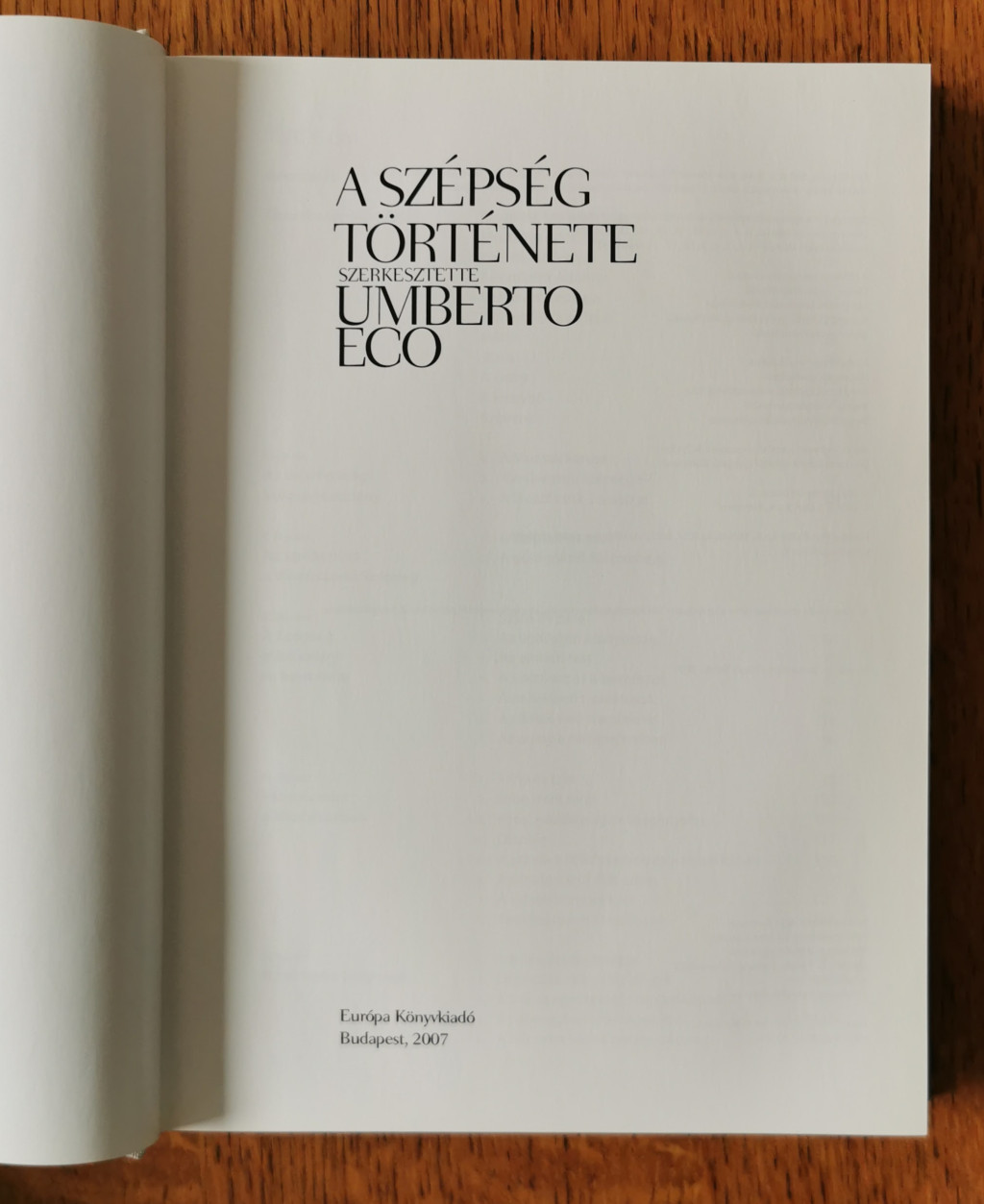 Ez a könyv bemutatja, mennyire sokféle módon fogták fel a természet, a virágok, az állatok, az emberi test, a csillagok, a matematikai viszonyok, a fény, a drágakövek, a ruhák, Isten és az Ördög szépségét. Bár csak a filozófusok, írók, tudósok, misztikusok vagy teológusok írásai s a művészek tanúságtételei maradtak ránk, e dokumentumok segítségével azt is rekonstruálhatjuk, milyennek érezhették a Szépséget az egyszerű emberek, a társadalom számkivetettjei, az utca emberei. Láthatjuk, hogy nem csupán más-más korokban, de egyazon kultúrán belül is feszültség lehetett a Szépség különféle formái között. Az olvasóra bízzuk, hogy e könyv átlapozása után maga döntse el, vajon a Szépség e különféle megjelenési formáiban fellelhetőek-e közös és állandó vonások. Annyi bizonyos, hogy mindenképpen lenyűgöző szellemi és érzelmi kalandra invitálnak bennünket.