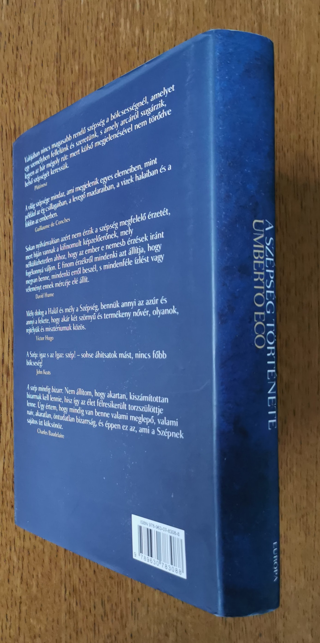 Noha minden idők remekműveinek százai illusztrálják, mégsem művészettörténeti könyv ez. A képek, akárcsak a Püthagorasz szövegeitől a legmaibb írásokig terjedő hatalmas szemelvénygyűjtemény, azt kívánják rekonstruálni, hogy a görög ókortól máig miféle elképzeléseket alkottak maguknak, hogyan gondolkodtak, és hogyan vitatkoztak az emberek a Szépségről.