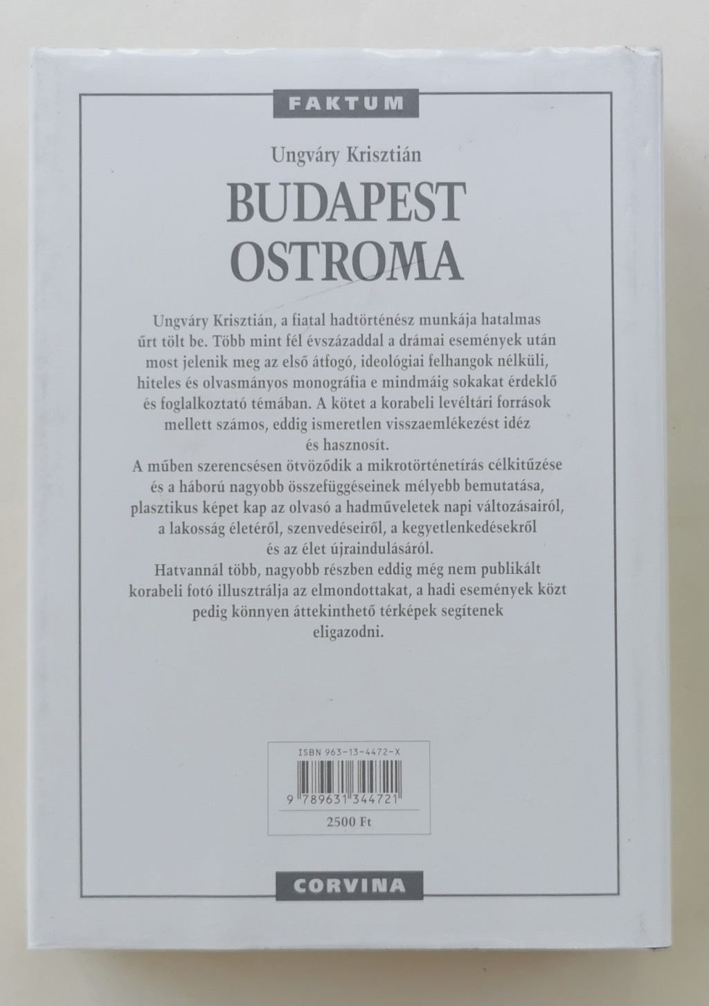 Ungváry Krisztián, a fiatal hadtörténész munkája hatalmas űrt tölt be. Több mint fél évszázaddal a drámai események után most jelenik meg az első átfogó, ideológiai felhangok nélküli, hiteles és olvasmányos monográfia e mindmáig sokakat érdeklő és foglalkoztató témában. A kötet a korabeli levéltári források mellett számos, eddig ismeretlen visszaemlékezést idéz és hasznosít.