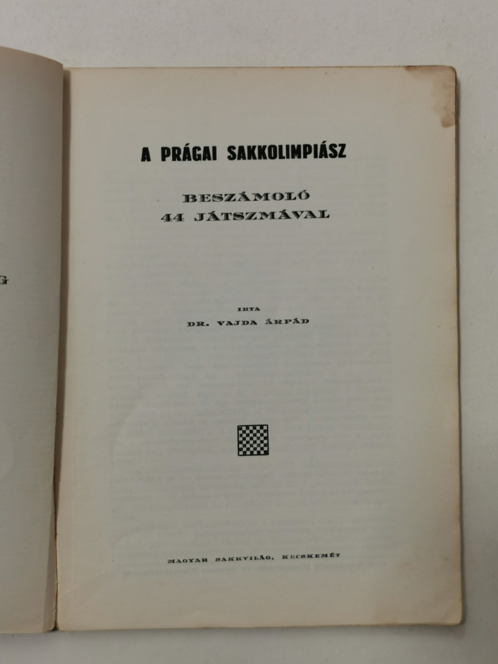 Vajda Árpád, Dr.: A prágai sakkolimpiász - Beszámoló 44 játszmával (Magyar Sakkvilág Könyvtára II.)