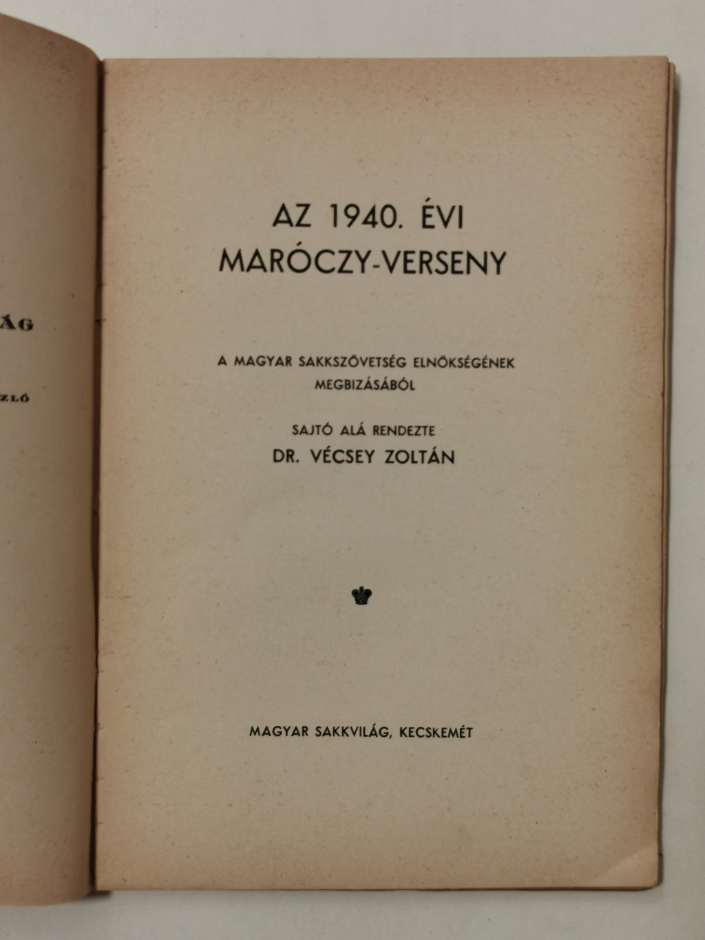 Vécsey Zoltán, Dr. (szerk.): Az 1940. évi Maróczy-verseny (Magyar Sakkvilág Könyvtára XIII.)