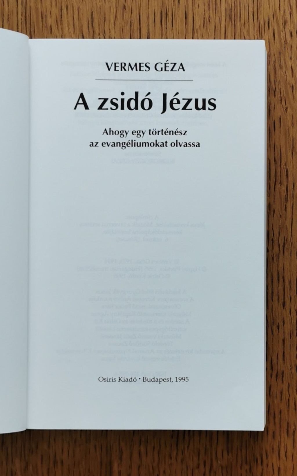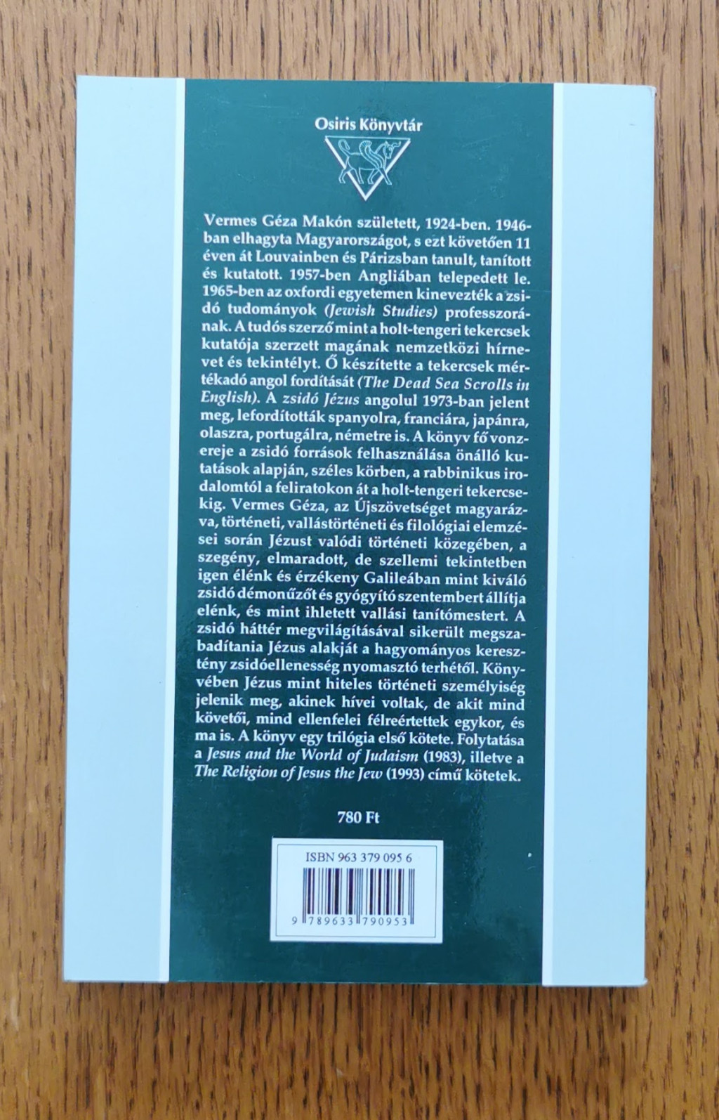 Vermes Géza; az Újszövetséget magyarázva, történeti, vallástörténeti és filológiai elemzései során Jézust valódi történeti közegében, a szegény, elmaradott, de szellemi tekintetben igen élénk és érzékeny Galileában mint kiváló zsidó démonűzőt és gyógyító szentembert állítja elénk, és mint ihletett vallási tanítómestert. A zsidó háttér megvilágításával sikrült megszabadítania Jézus alakját a hagyományos keresztény zsidóellenesség nyomasztó terhétől. Könyvében Jézus mint hiteles történeti személyiség jelenik meg, akinek hívei voltak, de akit mind követői, mind ellenfelei félreértettek egykor, és ma is. A könyv egy trilógia első kötete. Folytatása a Jézus és a judaizmus világa (1983, 1997 Osiris), illetve A zsidó Jézus vallása (1993, 1999 Osiris) című kötetek.
