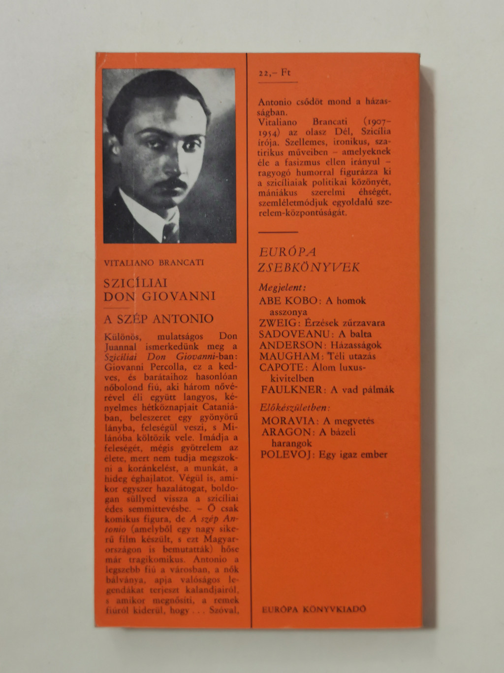 Különös, mulatságos Don Juannal ismerkedünk meg a Szicíliai Don Giovanni-ban: Giovanni Percolla, ez a kedves, és barátaihoz hasonlóan nőbolond fiú, aki három nővérével éli együtt langyos, kényelmes hétköznapjait Cataniában, beleszeret egy gyönyörű lányba, feleségül veszi, s Milánóba költözik vele. Imádja a feleségét, mégis gyötrelem az élete, mert nem tudja megszokni a koránkelést, a munkát, a hideg éghajlatot. Végül is, amikor egyszer hazalátogat, boldogan süllyed vissza a szicíliai édes semmittevésbe. – Ő csak komikus figura, de A szép Antonio (amelyből egy nagy sikerű film készült, s ezt Magyarországon is bemutatták) hőse már tragikomikus. Antonio a legszebb fiú a városban, a nők bálványa, apja valóságos legendákat terjeszt kalandjairól, s amikor megnősíti,a remek fiúról kiderül, hogy… Szóval Antonio csődöt mond a házasságban.