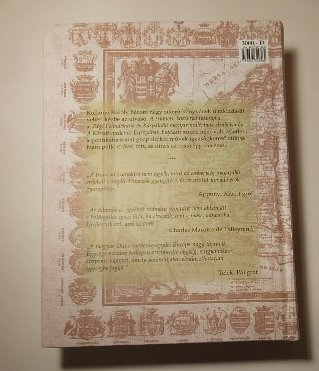 Kollányi Károly három nagy sikerű könyvének újrakiadását veheti kézbe az olvasó. A trianoni boszorkánykonyha, a Régi Felvidékünk és Kárpátalja magyar múltjának elrablása és A Kárpát-medence Európában hajdani sikere nem volt véletlen: a politikatörténeti-geopolitikai művek igazságkereső stílusa hiánypótló erővel bírt, és nincs ez másképp ma sem.