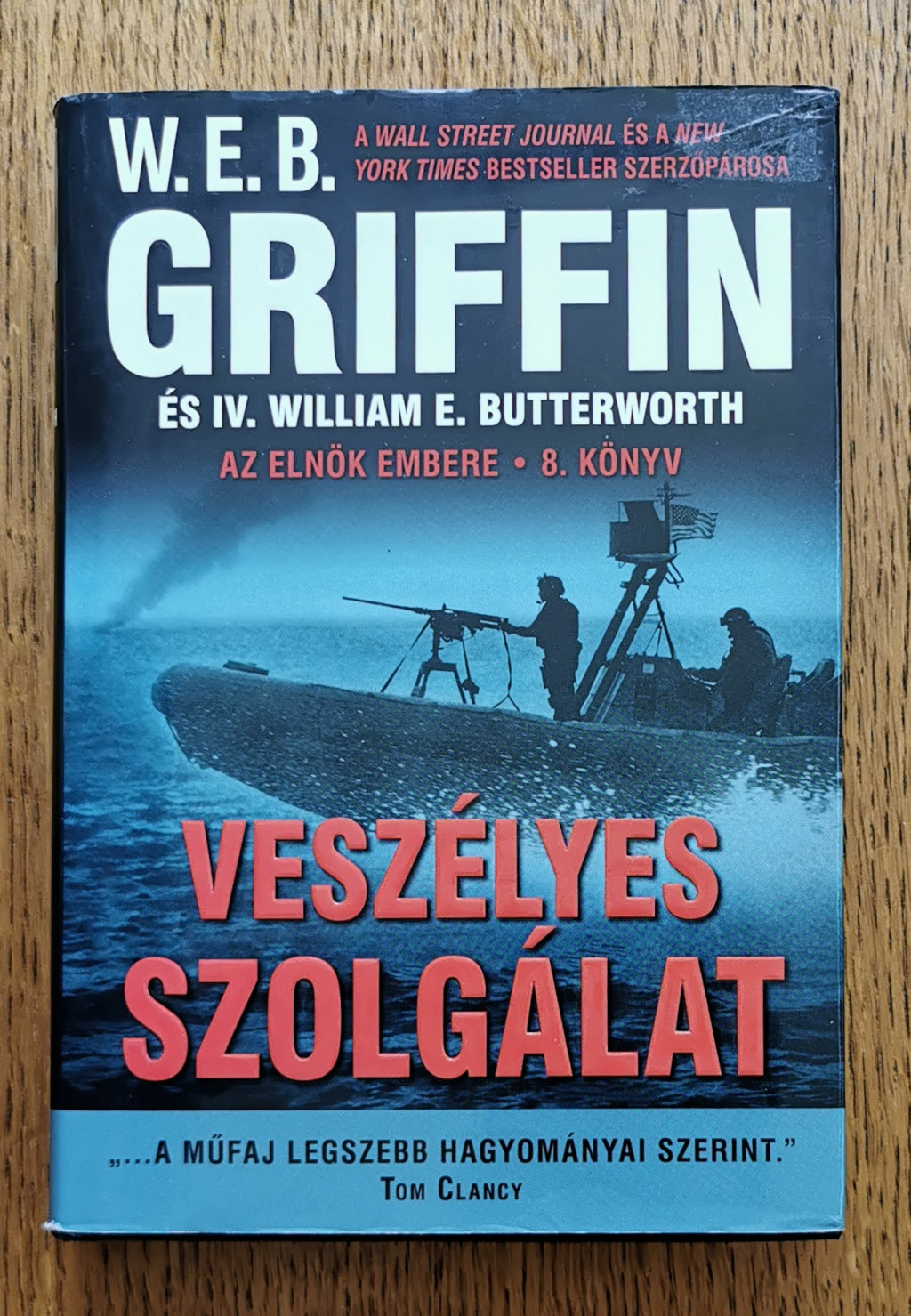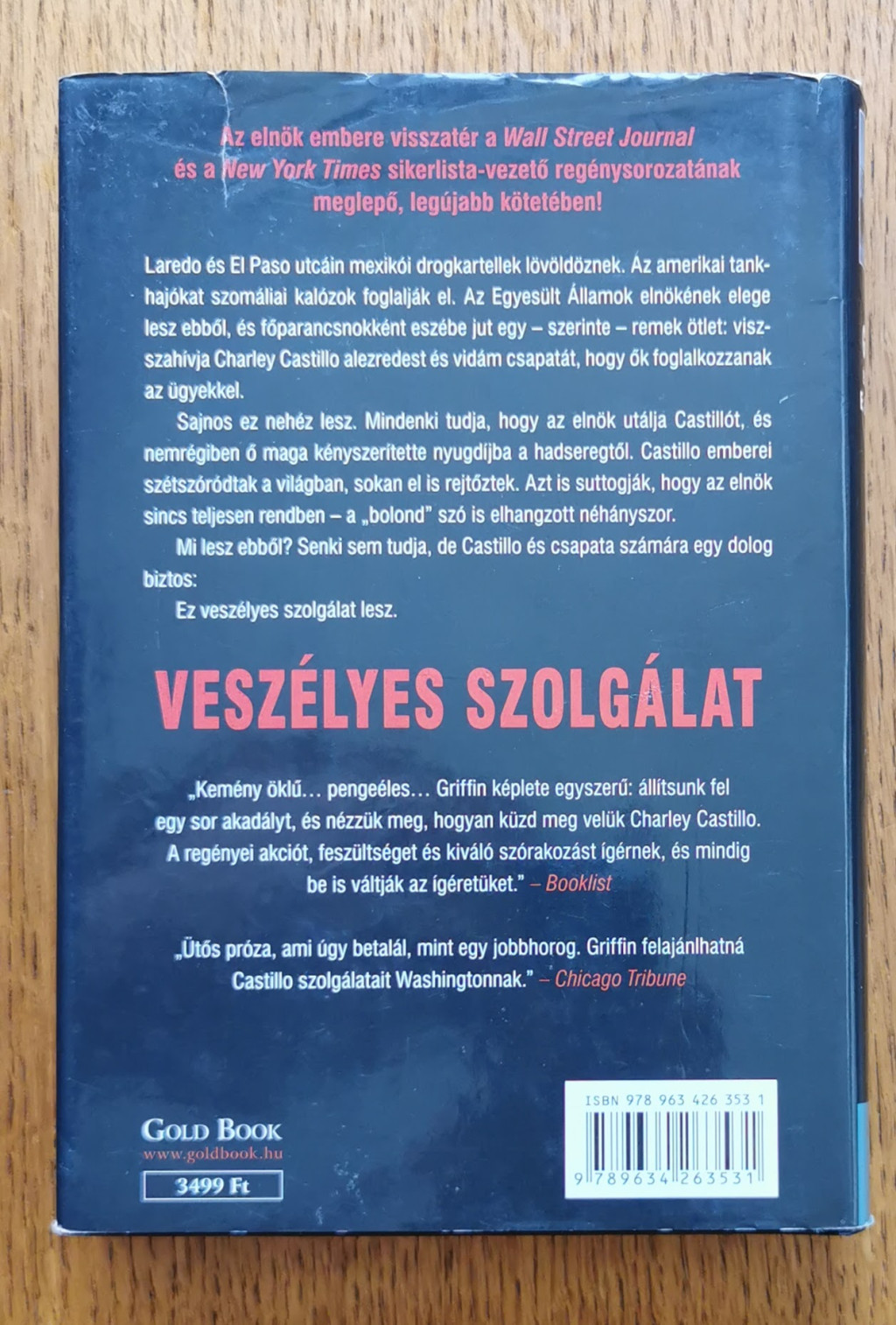 Az elnök embere visszatér a Wall Street Journal és a New York Times sikerlista-vezető regénysorozatának meglepő; legújabb kötetében! Laredo és El Paso utcáin mexikói drogkarteliek lövöldöznek. Az amerikai tankhajókat szomáliai kalózok foglalják el. Az Egyesült Államok elnökének elege lesz ebből, és főparancsnokként eszébe jut egy - szerinte - remek ötlet: visz-szahívja Charley Castillo alezredest és vidám csapatát, hogy ők foglalkozzanak az ügyekkel. Sajnos ez nehéz lesz. Mindenki tudja, hogy az elnök utálja Castillót, és nemrégiben ő maga kényszerítette nyugdíjba a hadseregtől. Castillo emberei § szétszóródtak a világban, sokan el is rejtőztek. Azt is suttogják, hogy az elnök fi sincs teljesen rendben - a „bolond" szó is elhangzott néhányszor. | Mi lesz ebből? Senki sem tudja, de Castillo és csapata számára egy dolog * biztos: Ez veszélyes szolgálat lesz. VESZÉLYES SZOLGÁLAT' J 1 „Kemény öklű pengeéles Griffin képlete egyszerű: állítsunk fel egy sor akadályt, és nézzük meg, hogyan küzd meg velük Charley Castillo. A regényei akciót, feszültséget és kiváló szórakozást ígérnek, és mindig be is váltják az ígéretüket." - Booklist Ütős próza, ami úgy betalál, mint egy jobbhorog. Griffin felajánlhatná Castillo szolgálatait Washingtonnak." - Chicago Tribüné