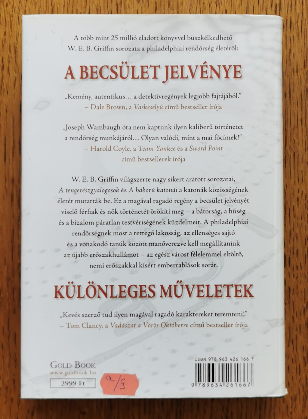 W. E. Griffin világszerte nagy sikert aratott sorozatai; A tengerészgyalogosok és A háború katonái a katonák közösségének életét mutatták be. Ez a magával ragadó regény a becsület jelvényét viselő férfiak és nők történetét örökíti meg - a bátorság, a hűség és a bizalom páratlan testvériségének küzdelmeit. A philadelphiai rendőrségnek most a rettegő lakosság, az ellenséges sajtó és a vonakodó tanúk között manőverezve kell megállítaniuk az újabb erőszakhullámot - az egész várost félelemmel eltöltő, nemi erőszakkal kísért emberrablások sorát.