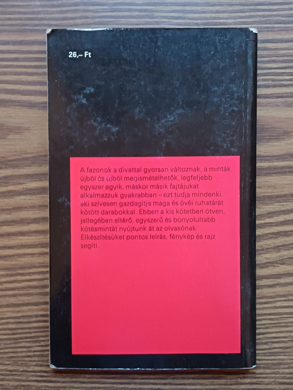 A fazonok a divattal gyorsan változnak; a minták újból és újból megismételhetők, legfeljebb egyszer egyik, máskor másik fajtájukat alkalmazzuk gyakrabban - ezt tudja mindenki, aki szívesen gazdagítja maga és övéi ruhatárát kötött darabokkal. Ebben a kis kötetben ötven, jellegében eltérő, egyszerű és bonyolultabb kötésmintát nyújtunk át az olvasónak. Elkészítésüket pontos leírás, fénykép és rajz segíti.