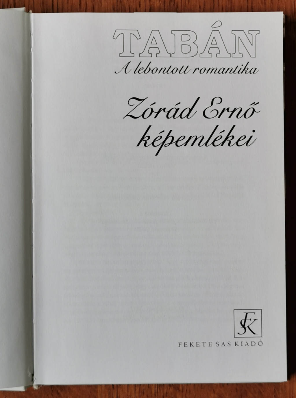 Budapest „Montmartre”-jának, az 1930-as évek elején lebontott Tabánnak szinte csak a neve maradt meg, de hajdani romantikáját, a girbe-gurba utcák, macskaköves terek hangulatát, jellegzetes figuráit s az őket körülvevő tárgyi világot Zórád Ernő képemlékeivel nemzedékek számára látvánnyá tette, „ecsettel lefényképezve” az utókor számára a helyszíneket. Az albumban szereplő 84 kép jórésze eleddig kötetben meg nem jelent alkotás. A könyv irodalmi szemelvényei az eltűnt városrész hangulatát idézik, a térkép és az utcák jegyzéke, várostörténeti leírása pedig topográfiailag pontosítják az olvasóban a kötet forgatása közben már közössé vált képemlékeket. "