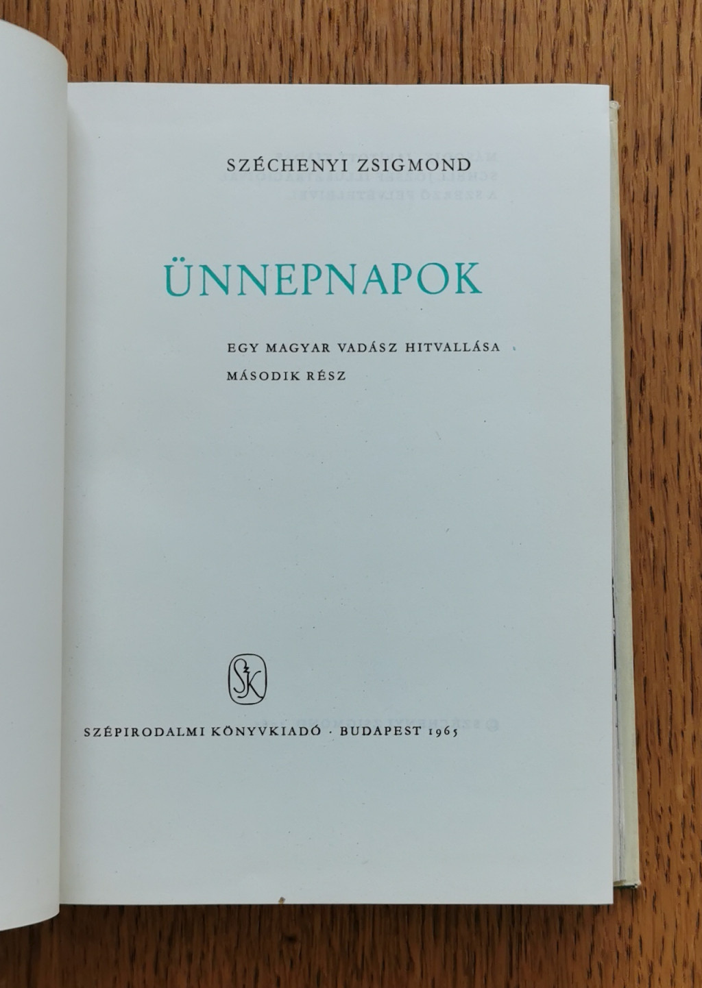 A szerző "vadász-önéletrajzának" első kötete; a felnőttéválás, a szenvedély növekedésének története Ahogy elkezdődött címmel jelent meg. Az Ünnepnapok a férfikor magyarországi és európai vadászatairól számol be. Nem csupán - a szerző szavával - "emlékzsákmányát" nyújtja át az olvasónak: a legérdekesebb, legemlékezetesebb élményeket, a legjelentősebb zsákmány elejtésének történetét, hanem tapasztalattá, elvvé összegezi mindazt, amit egy gazdag élet élményei és töprengései elmondhatnak a természetről, a vadról, a vadászetikáról, vadnevelésről és a puskázás gyakorlatáról. Sorra veszi a legfontosabb - vagy éppen legkülönlegesebb - vadfajtákat, a fácántól a kőszáli kecskéig, s elmeséli személyes tapasztalatait s mindazokat a tudnivalókat, amelyek nélkül a vadászat puszta öldöklés vagy ügyetlen és eredménytelen próbálkozás. A kötetet a szerző felvételei és Schell József rajzai díszítik.