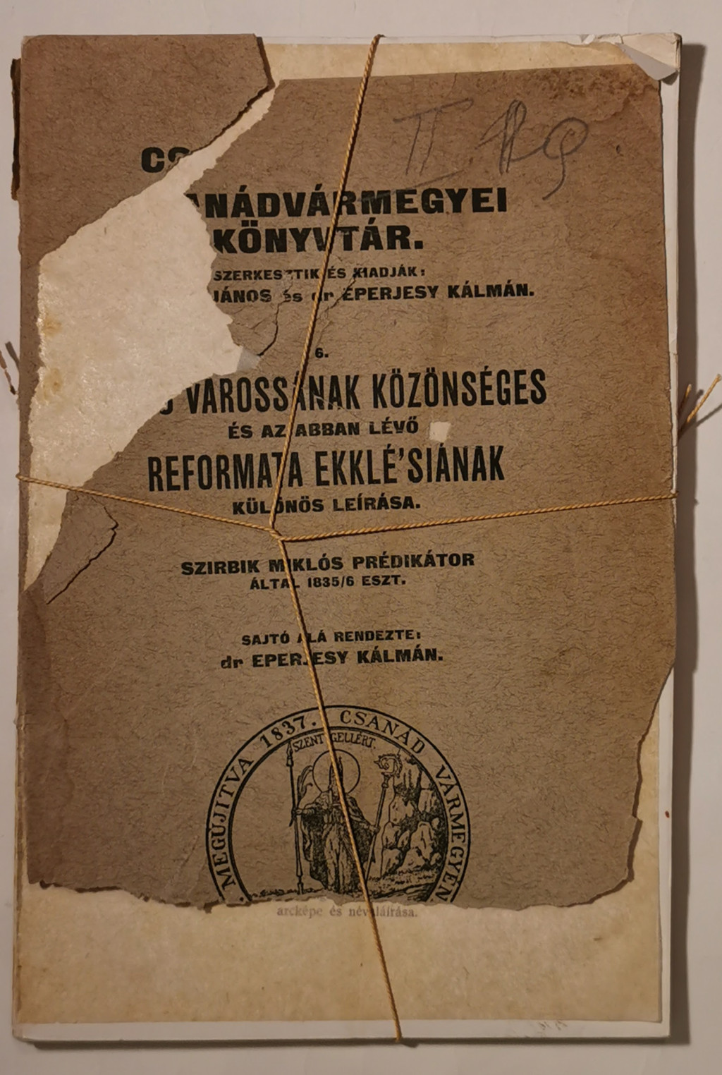 Szirbik Miklós: Makó várossának közönséges és az abban lévő reformata ekklé'siának különös leírása. Szirbik Miklós prédikátor által 1835/6 eszt[endőben]. Sajtó alá rendezte: Eperjesi Kálmán.Makó, 1926. Makói Friss Ujság Nyomda- és Lapkiadóvállalat. 1 t. (címképen a szerző portréja) + 104 p.