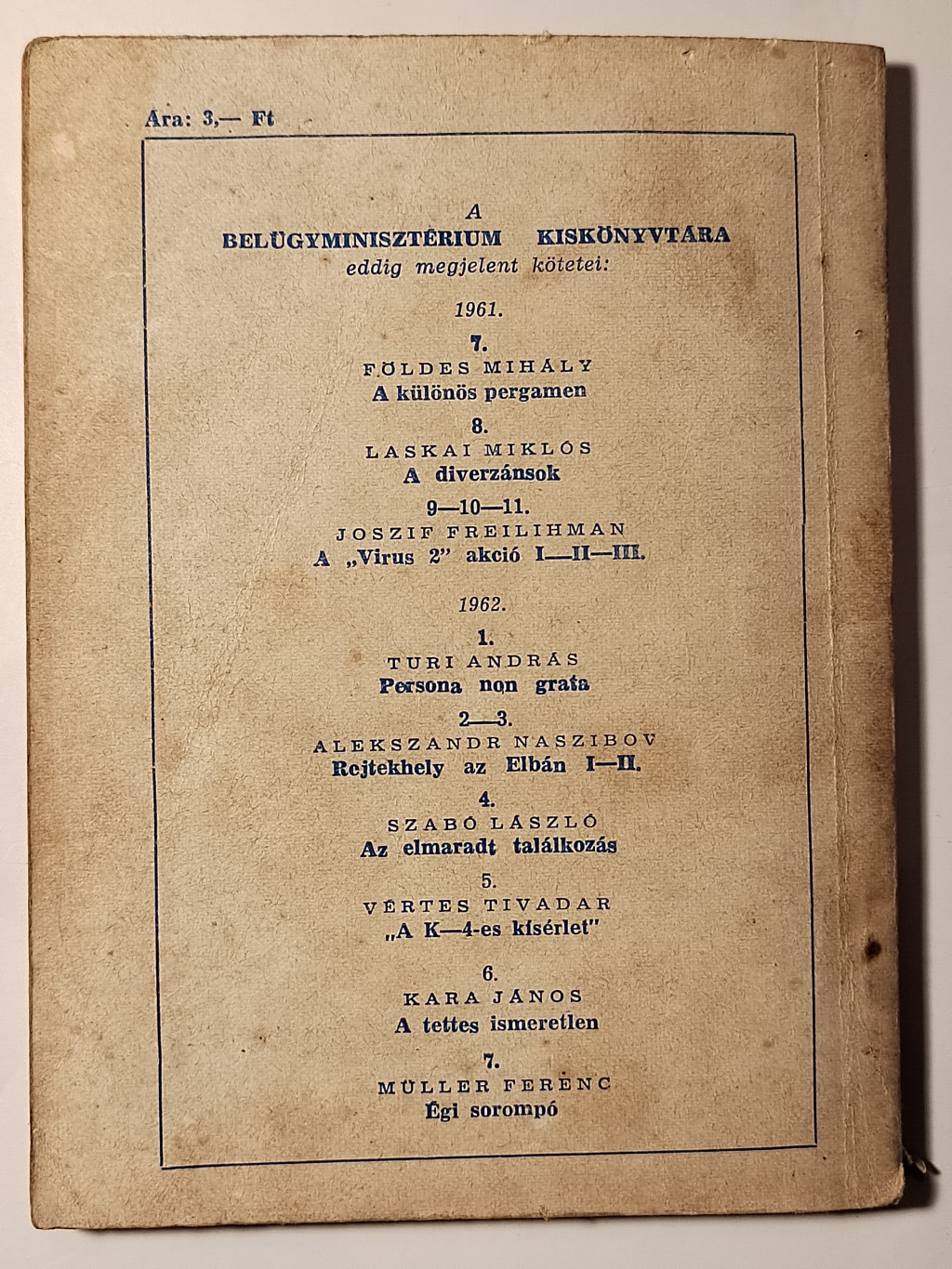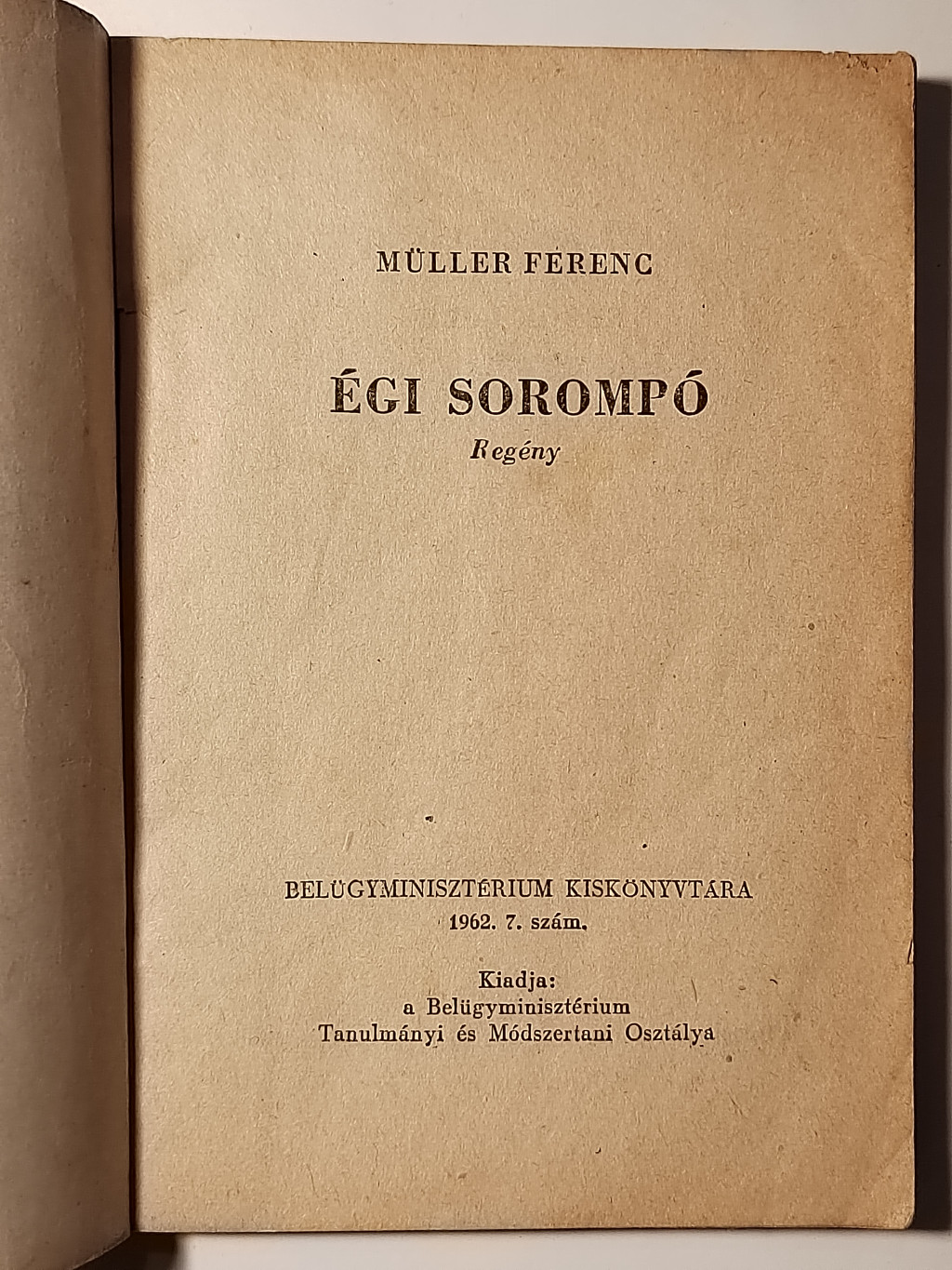Müller Ferenc: Égi sorompó (Belügyminisztérium Kiskönyvtára 1962 7. sz.)