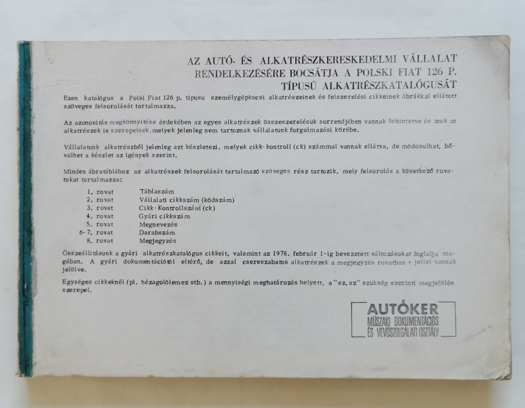 Polski Fiat 126p személygépkocsi alkatrészkatalógusa
