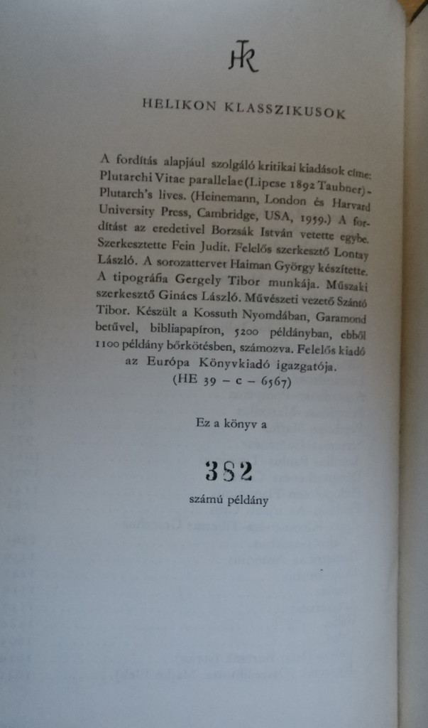 Plutarkhosz: Párhuzamos életrajzok (Bibliofil sorszámozott bőrkötés!)
