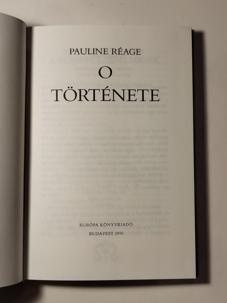 O-t, a független párizsi lányt, kedvese autóba ülteti, elveszi tőle bugyiját és harisnyatartóját, s közli vele, hogy ezeket többé nem viselheti. Elviszi egy kastélyba, ahol O-t meztelenre vetkőztetik, megerőszakolják, kikötözik és megkorbácsolják. Elmondják neki, hogy ezt ezentúl bárki megteheti vele, s ha vét a szigorú rend ellen, azt vesszőzéssel büntetik; de ettől függetlenül is minden nap megkorbácsolják a meztelen fenekét és combját. Föltéve, ha beleegyezik. És O, a független, szabad lény, beleegyezik. Így kezdődik a huszadik századi francia irodalom kétségkívül legnagyobb hatású regénye. Pauline Réage, akinek a kiléte mindmáig a francia kultúra egyik jól őrzött titka ötvözi az évszázados hagyományokra visszatekintő francia erotikus elbeszélést a huszadik század döbbenetével: miért vállal szenvedést és mártíromságot az ember egy nemes eszmével álcázott aljas ügyben. S miközben O - avagy a huszadik századi önkényuralmi rendszerek páriája és eszköze - egyre képtelenebb feltételekhez idomítja életét, fölsejlik: mivé változik ezenközben ő maga? Erről szól a világirodalom leghíresebb erotikus regénye, az O története.