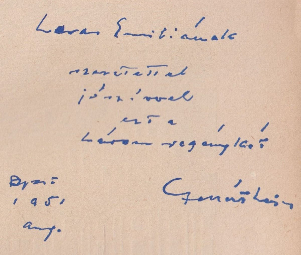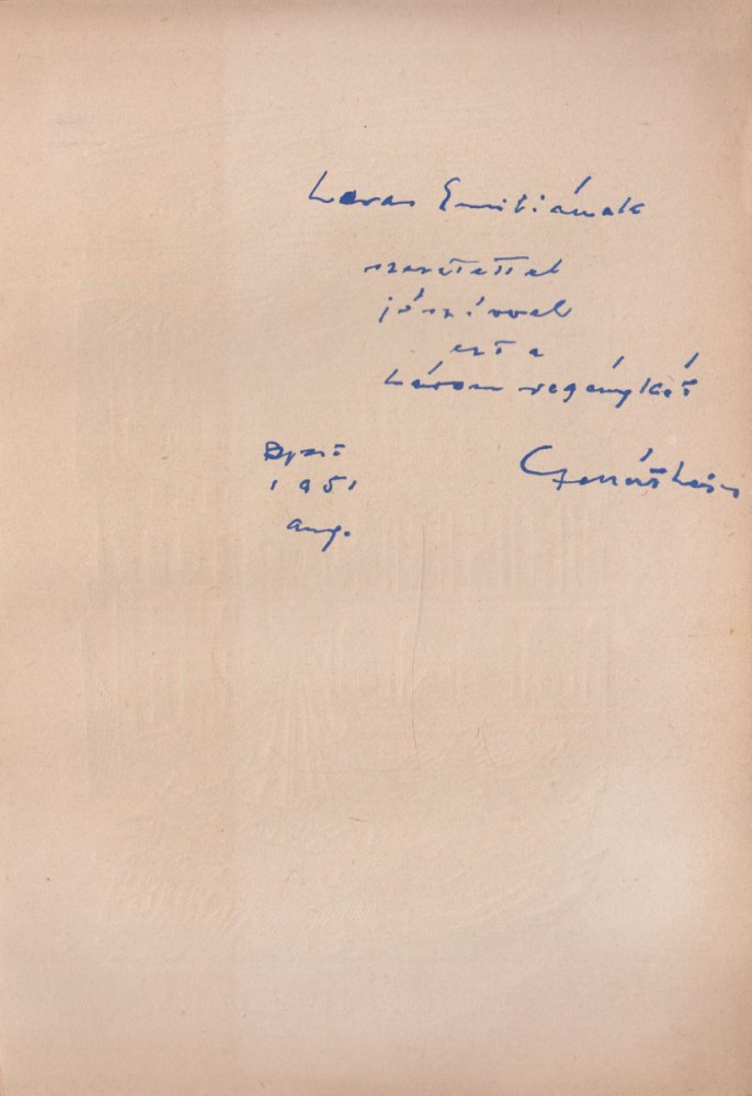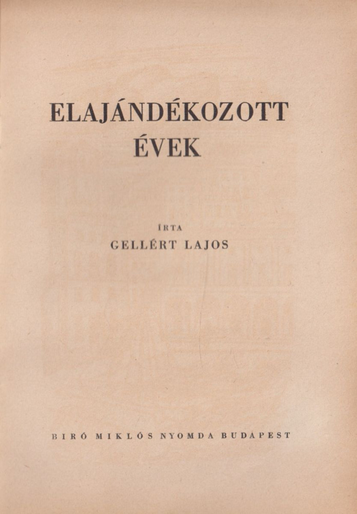 Gellért Lajos: Elajándékozott évek. (Divéky József fába metszett rajzaival) Bp., (1943.) (Szerző) Biró Miklós ny. 1 t. + 188 + 4 p. Dedikált: „Lovas Emiliának szeretettel jó szívvel ezt a három regénykét Bpest 1951 aug. Gellért Lajos”. Készült 1000 számozott példányban, jelen kötet számozatlan. Fűzve, kiadói, illusztrált (Divéky József) papírborítóban. 205 mm. Szép példány.